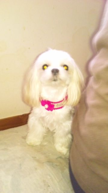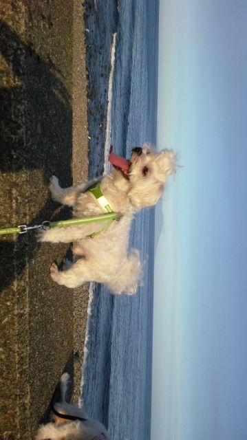 モネちゃんはマルチーズとプードルのミックス。ジャンプ力とか遊び好きなところはプードル。