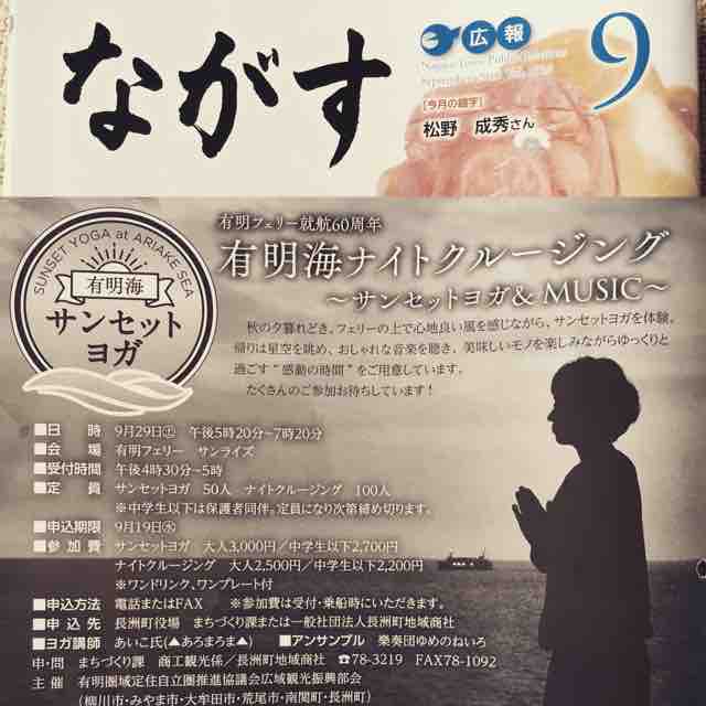 長洲町の広報に!有明海ナイトクルージング〜サンセットヨガ&MUSIC〜