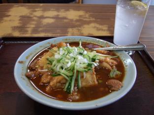 タンタン麺には、、比較的大きな肉の塊が乗っている。
