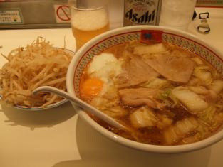 「もやしラーメン(750円)」に「温泉玉子(100円)」を注文〜。