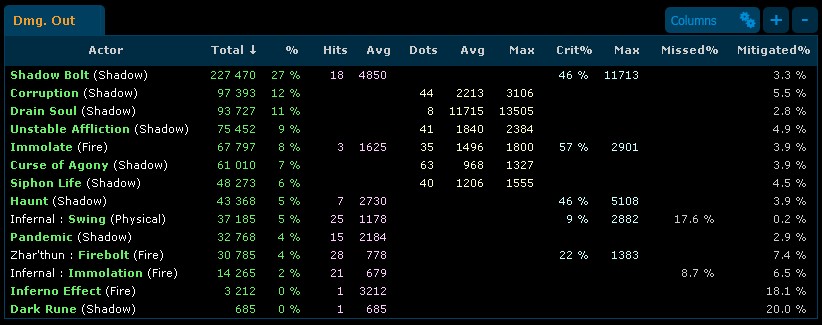 dest lockがhigh DPSだった一番の理由はImproved Shadow Boltの恩恵に拠るところが大きかった訳なんですが、raid buffじゃなくなった&効果が10%に下がった(元は20%)のは聞いてはいたものの、加えてdotにSBのcrit効果が乗らなくなってるんですね・・・どnerf。