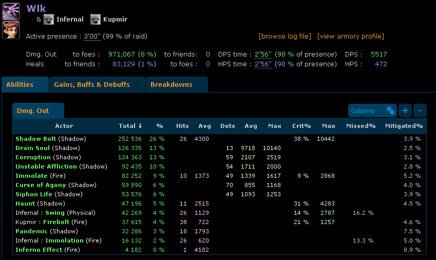 TBC時のタレントに比べるとSpriもaffi lockも部分的にMFやdotがcritするようにはなってはいるものの、他クラスと比べるとcrit rateによる恩恵は限定的です。となると例の如く、raidがT8・T9ゾーンへと進捗するにつれ、dotユーザーではなくDD・bolt系が(ますます)幅を利かせてくるような気がします。
