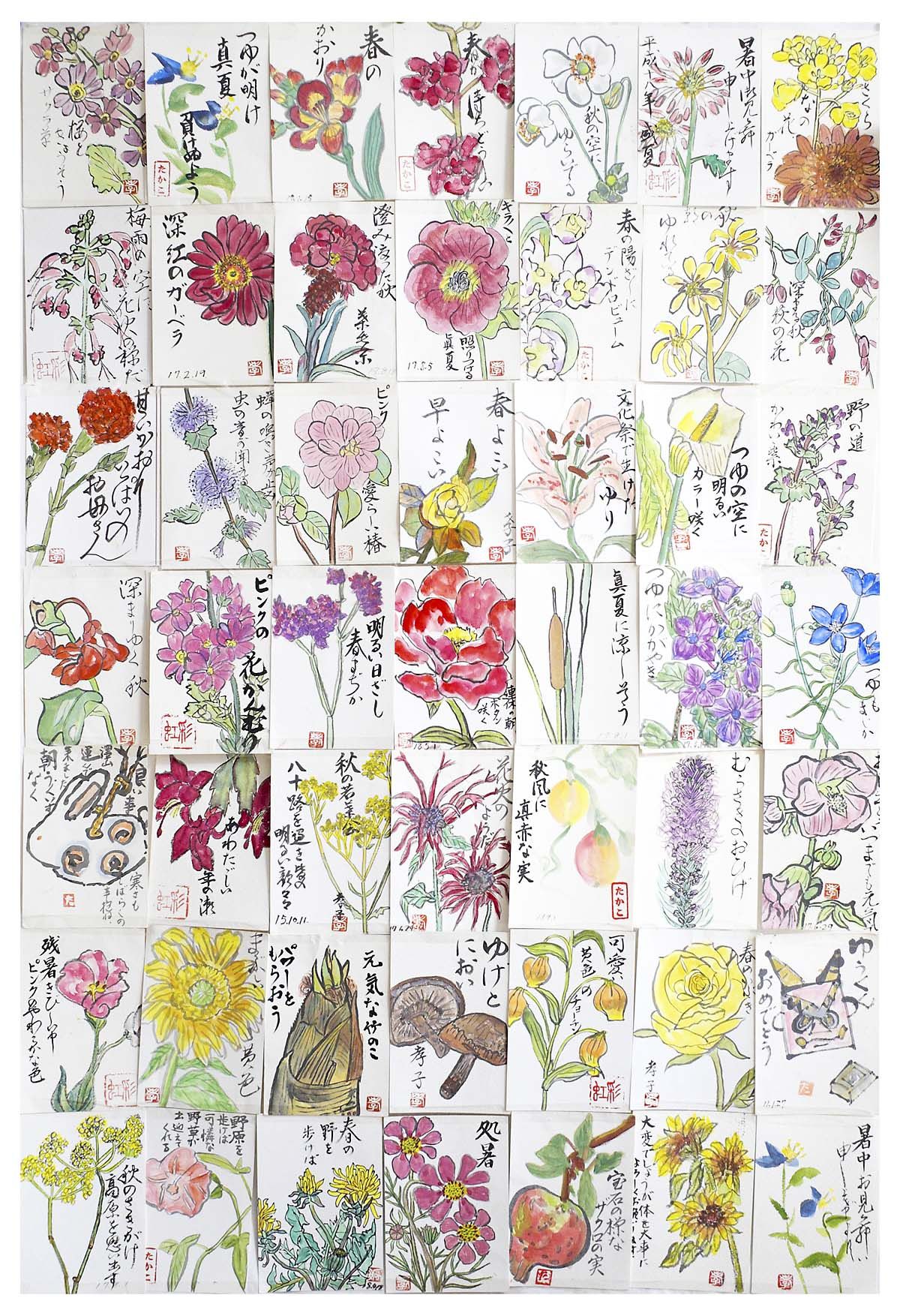 絵手紙を1枚作ると肩が痛くなってしまいますが、皆さんに励まされ描きつづけます。