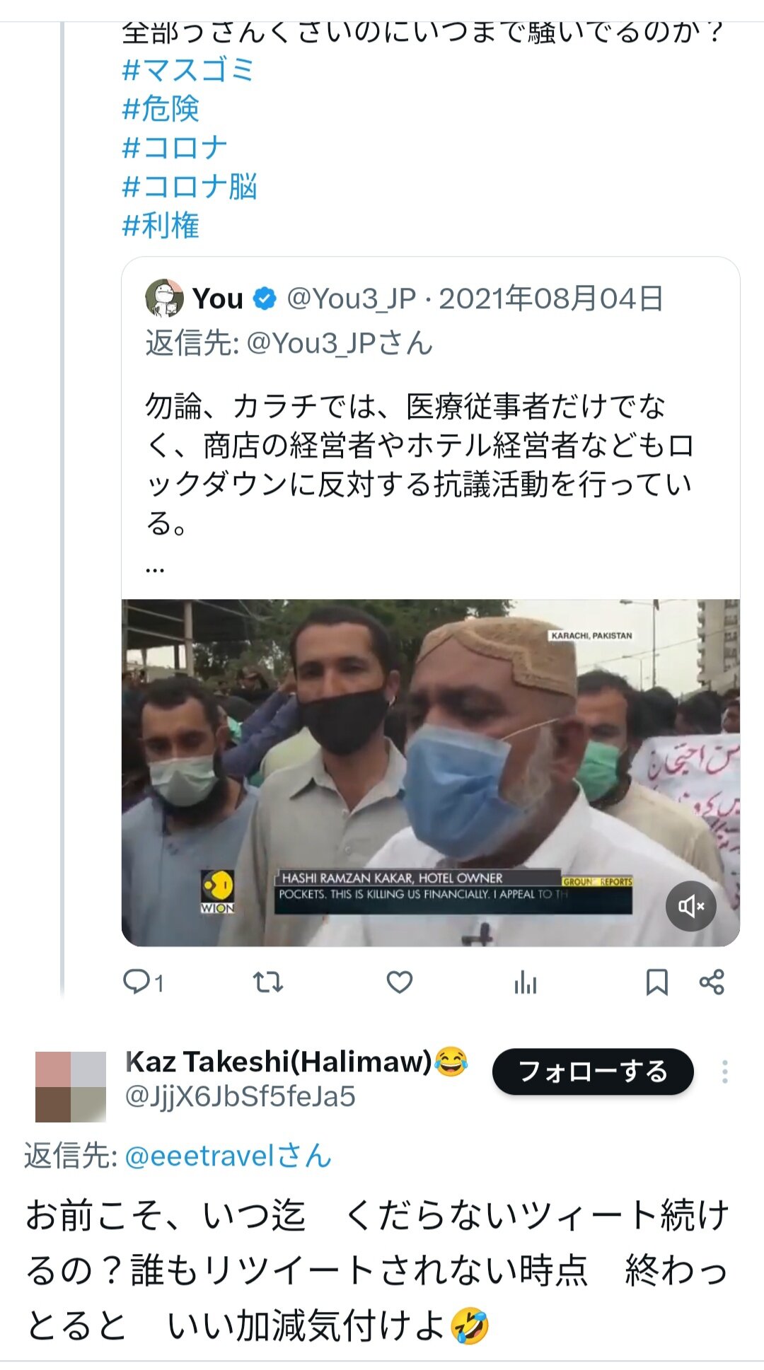 ※複数垢で誹謗中傷を繰り返している知能が低いコロナ脳が勝手になりすまして同胞の知能が低いコロナ脳を煽っている。