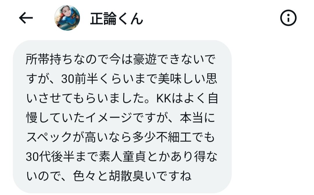 長年誹謗中傷を繰り返すグループに「盗撮を拡散させたり、グループで誹謗中傷を繰り返したりしてたのは東南アジアで違法買春アテンドをするためか?」と指摘したら私への誹謗中傷が増えた。この掲示板は正論の海外での犯罪(置屋だけでなく日本人も盗撮拡散)を周知するための掲示板なのになぜか正論と仲間の南国が私を含めた他者を毎日誹謗中傷する掲示板になっている。日本人かどうかは知らないが、海外にはこういう犯罪者グループがいるから要注意だ。写真や動画、氏名を公開され、さらに誹謗中傷が増えた。複数の捨て垢を使い、盗撮した日本人の写真も公開し、誹謗中傷を繰り返している。