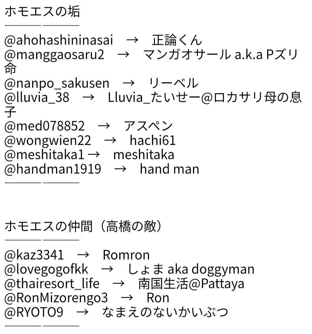 数年前から痛い誹謗中傷承認欲求グループに粘着されてた被害者だから、痛いだけでなくおもんない幼稚な承認欲求グループを掲載しておく。長年集団で誹謗中傷を繰り返してきたのに放置してる警察やSNS、通信会社は終わってる。東南アジアでも不良外国人(日本人も)が大迷惑で仕方ない。