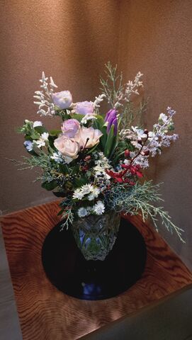 (写真は、原田門徒総代様から頂いた結婚記念日のお花と、