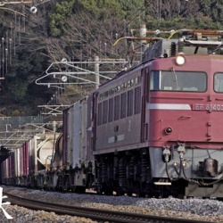 線路端の撮影ポイントから茅場トンネル内に2灯のヘッドライトを視認しておよそ10数秒 ローズピンクのEF81403が牽引 荷載りのいいコキを連ねて4075レが飛び出してきた 電暖表示灯は2016年に撤去されたが 関門トンネル区間用重連総括制御のためのジャンパー栓ホースはその ...