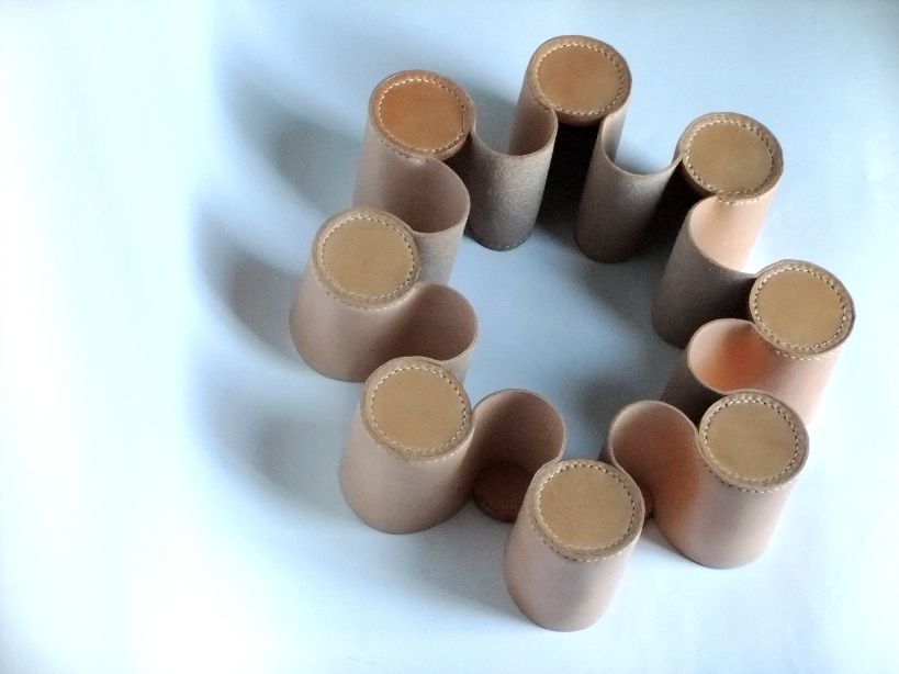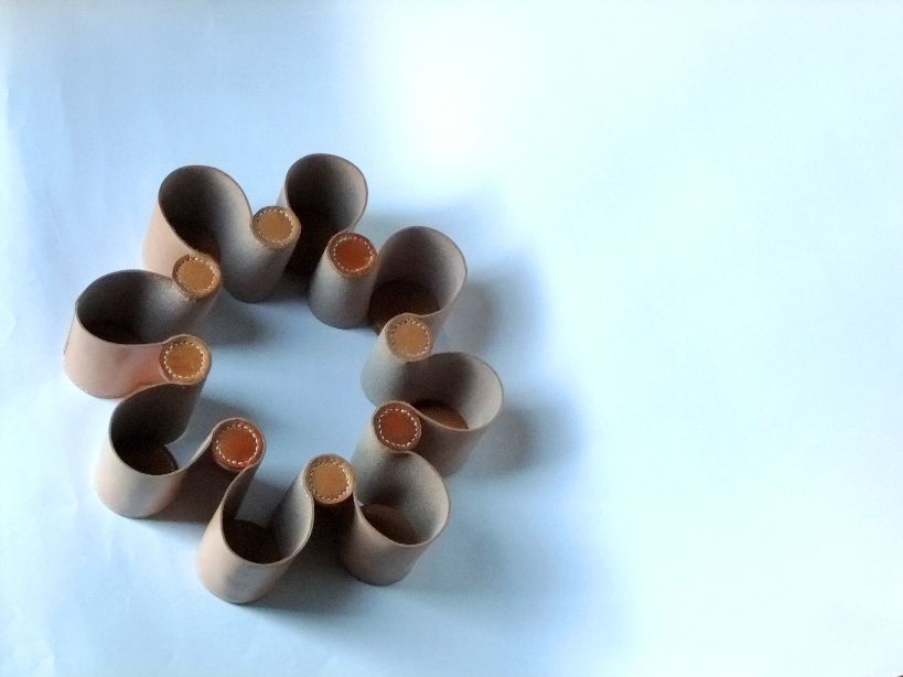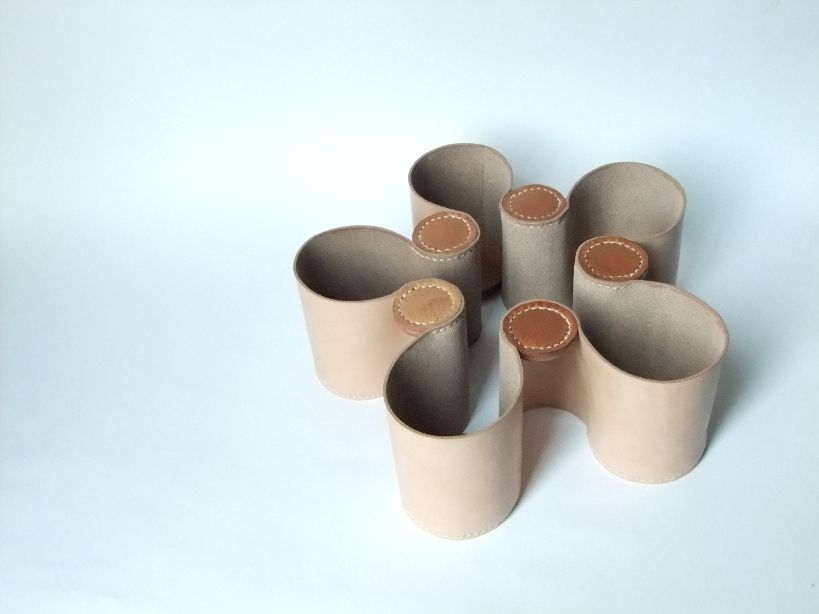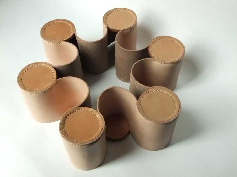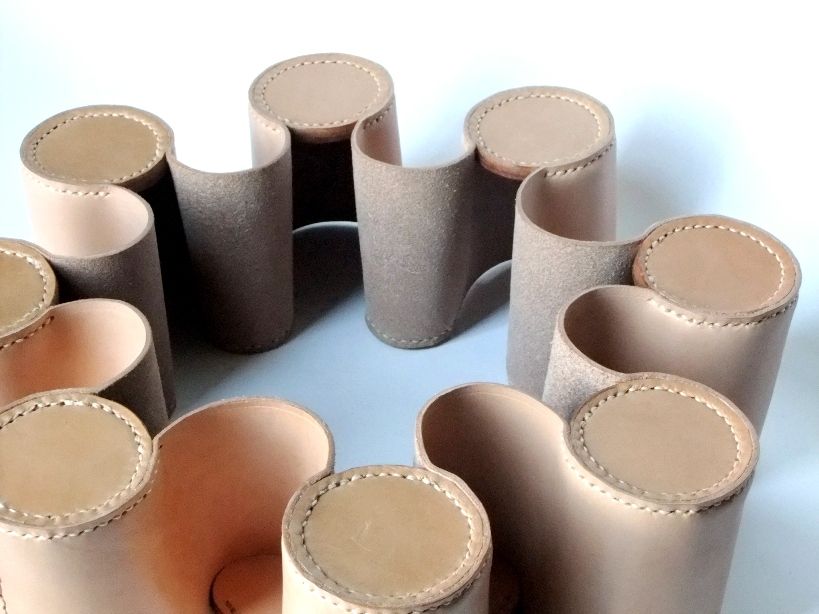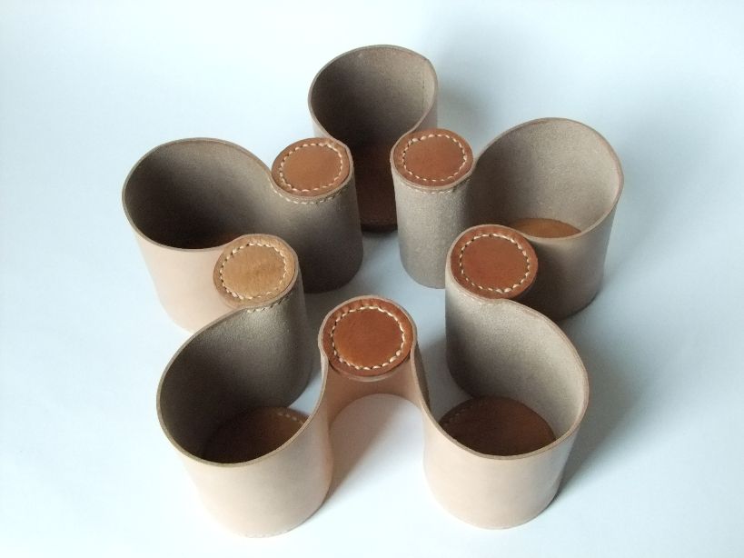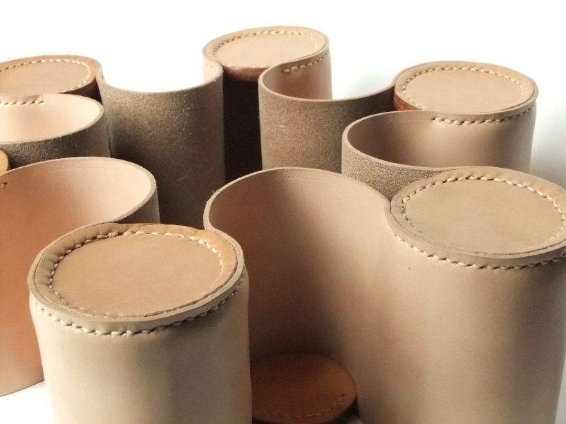 役に立たないものの役立て方を探りながら、革でさまざまな形を作っています。