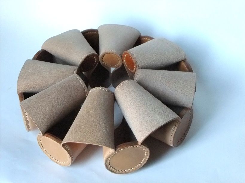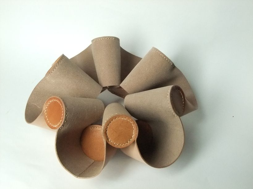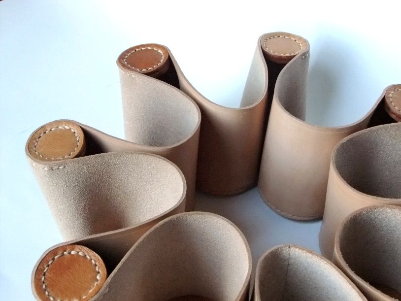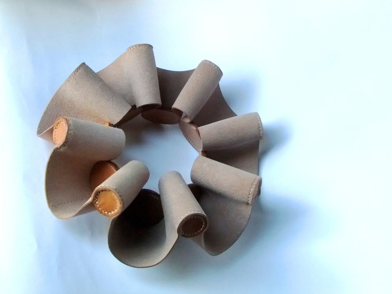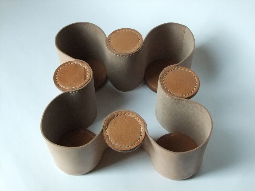 役に立たないものの役立て方を探りながら、革でさまざまな形を作っています。