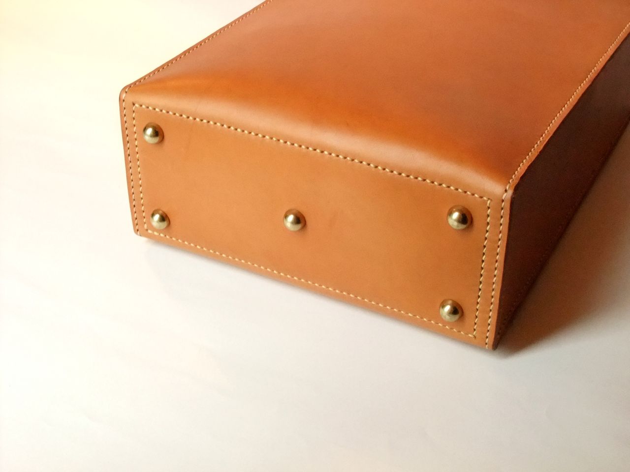 地面に直接カバンを置けるように、底には鋲が5つ打ってある。