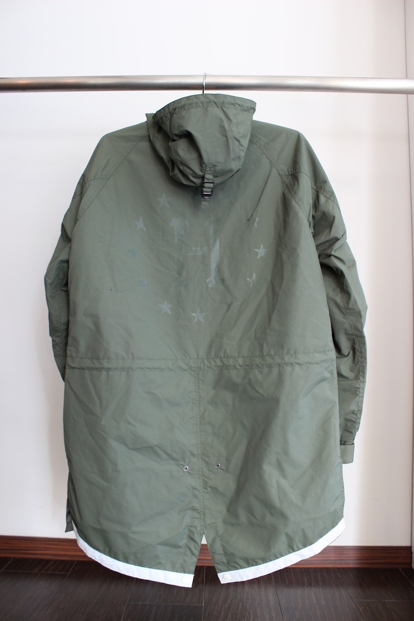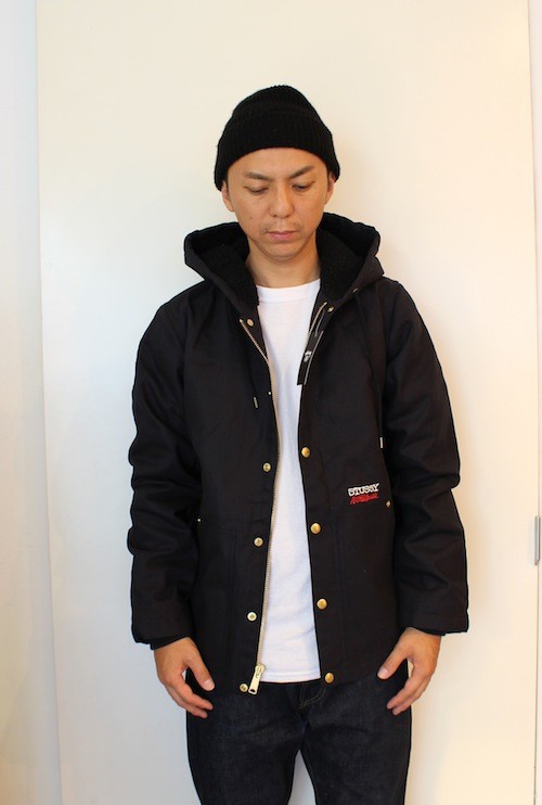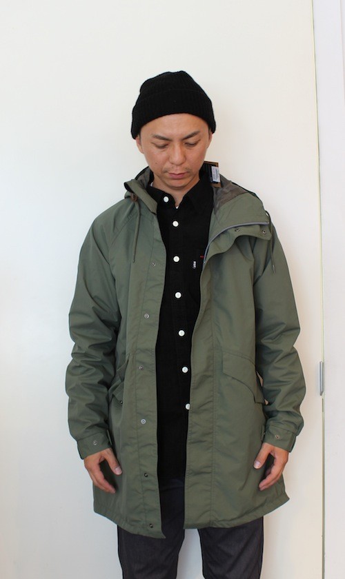 HOODはボタンにより脱着可能。袖部分もゴムプラスボタンにより調整が可能、スソ部分にはドローコード(ヒモ)がついておりますので、スソ幅も調整が可能!