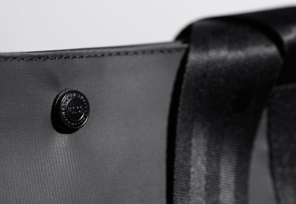 品の良いNYLONを使用したデザインで、程よい大きさのトートバッグ!外側にはジップ付きのポケット、内側はシンプルな作りで、メッシュポケットがつきます。