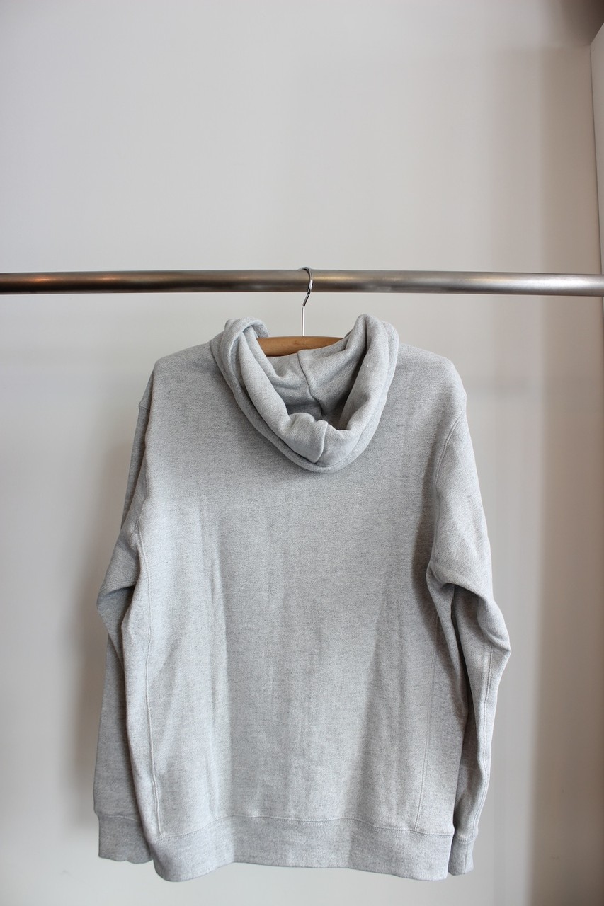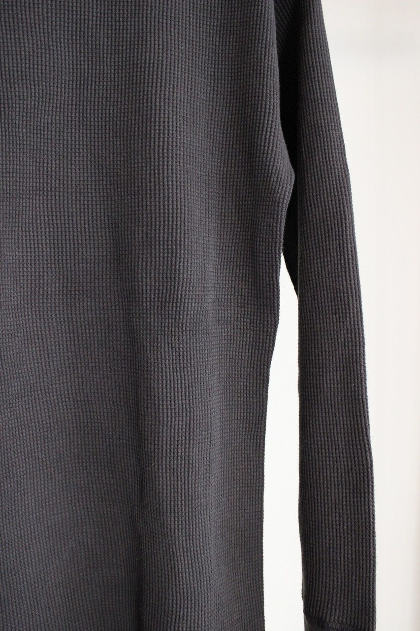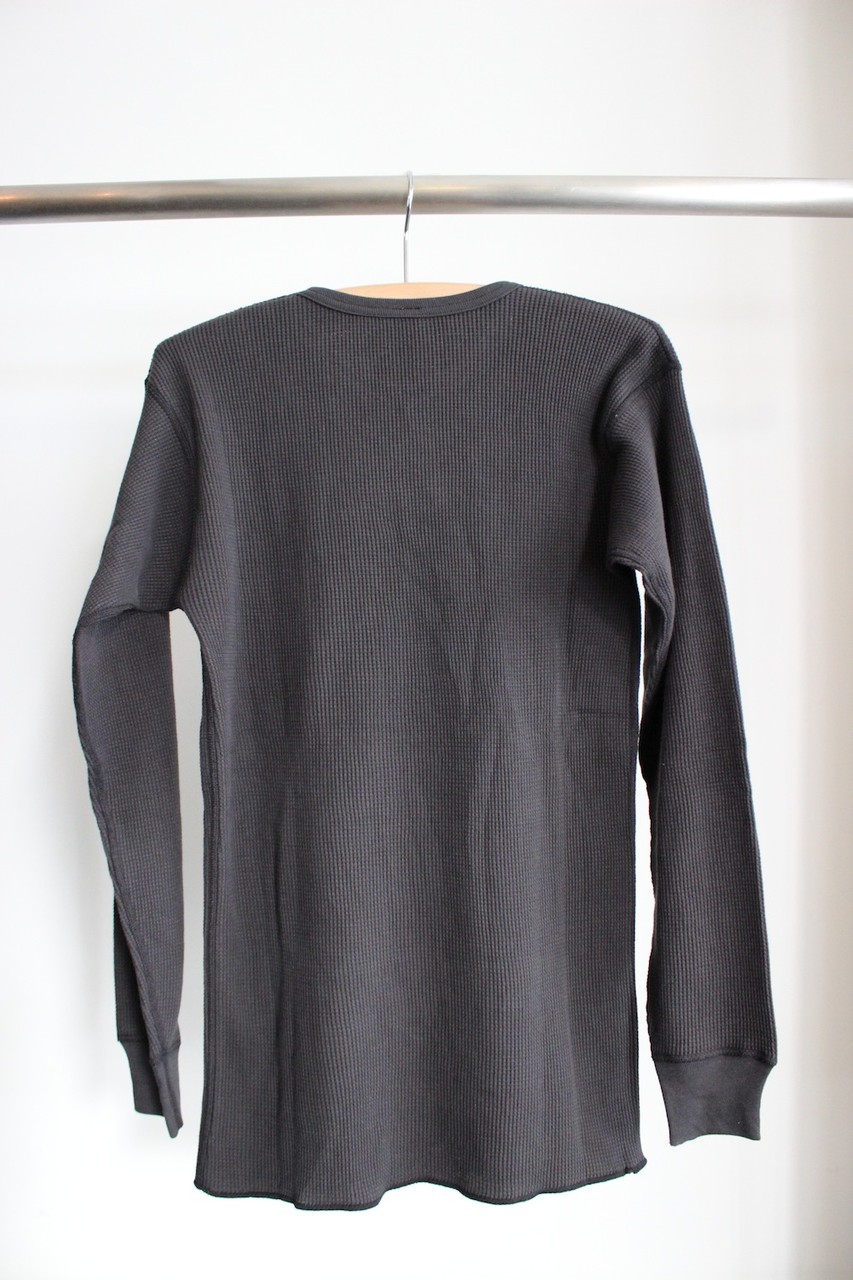 しっかりとした肉厚サーマル生地で、左スソにタグを配置。