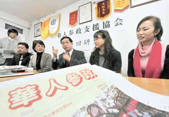 昨年十二月下旬、東京・池袋で開かれた「華人参政支援協会」の第一回研究会。来日二十一年の蘇霊さん(51)が力強く訴えると、同席した中国人数人がうなずいた。いずれも一九八〇年代以降に来日した「新華僑」と呼ばれる人々だ。
