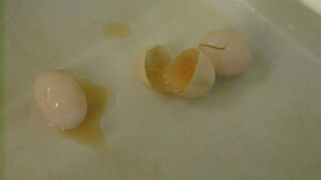 2個産んで1個は殻が割れていた。