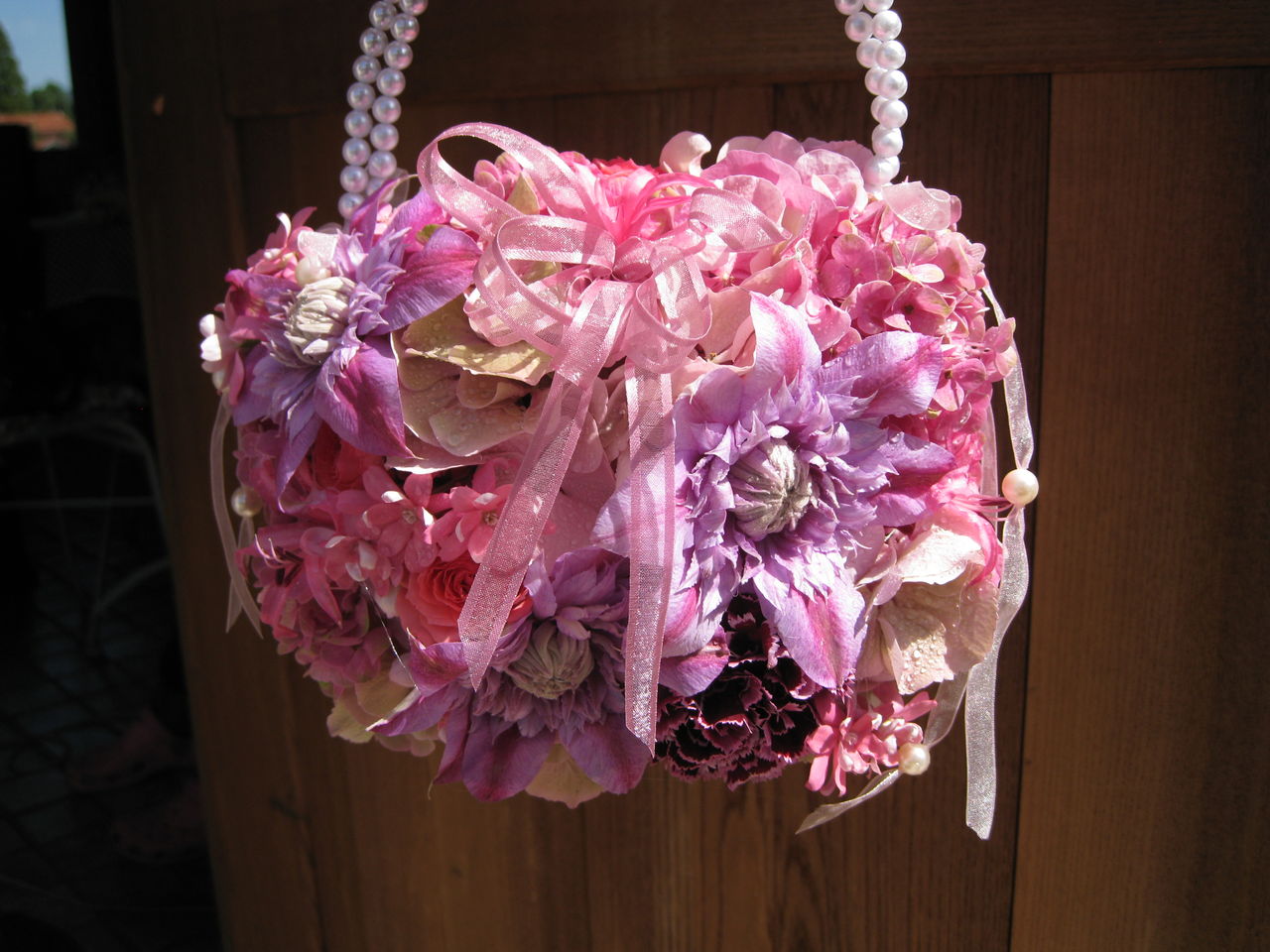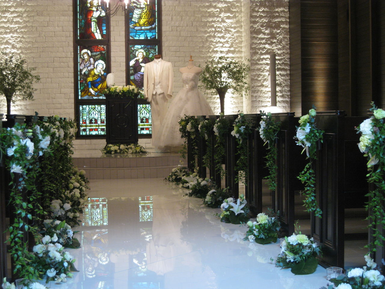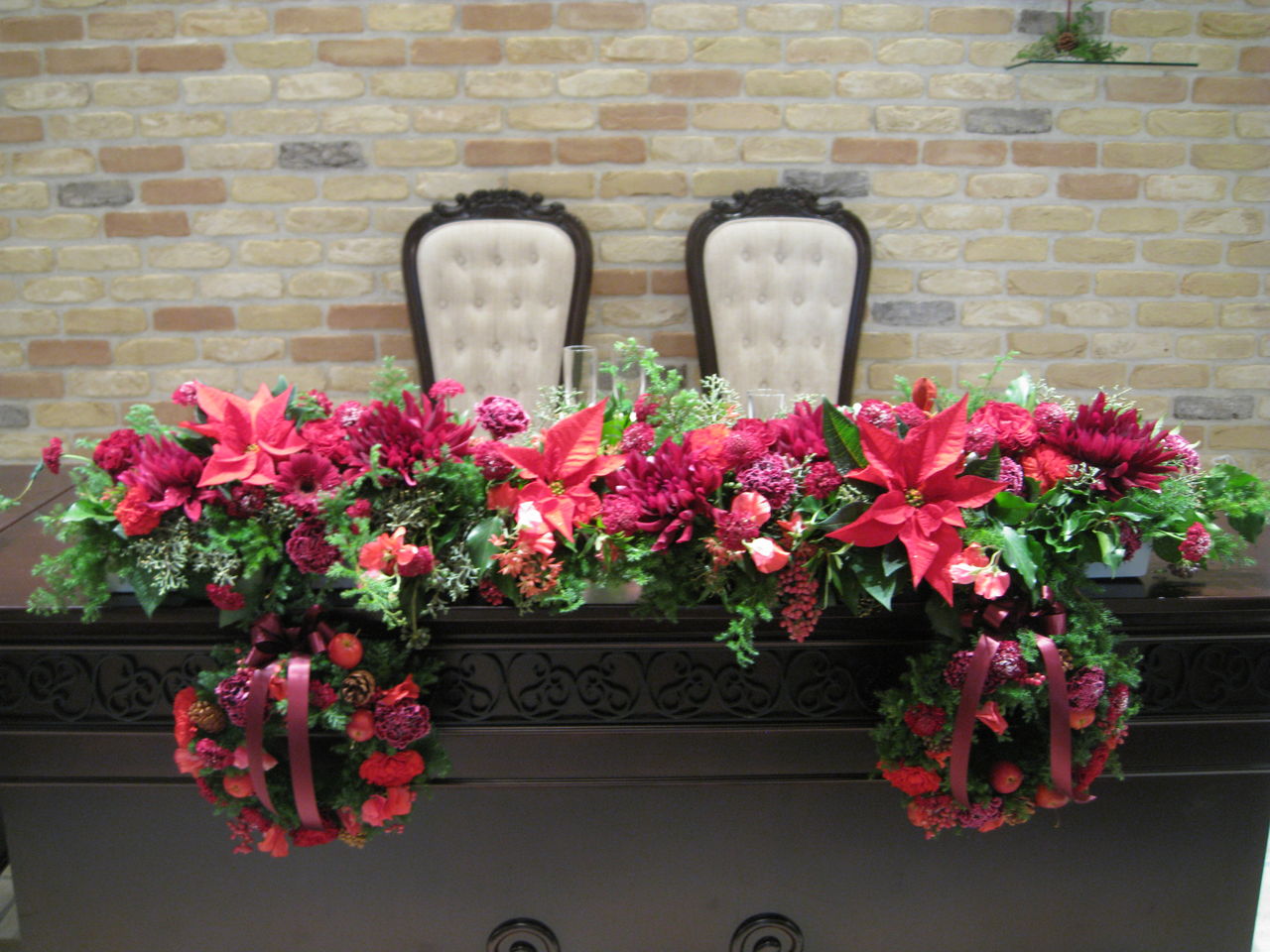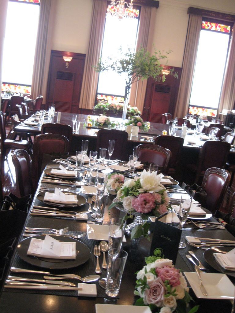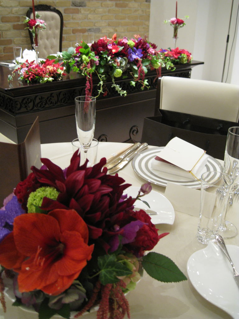 今年初めてのブライダルです。階段に下げたイニシャルは、手づくりで土台を作り、それにコケをワイヤーで、止めたものです。