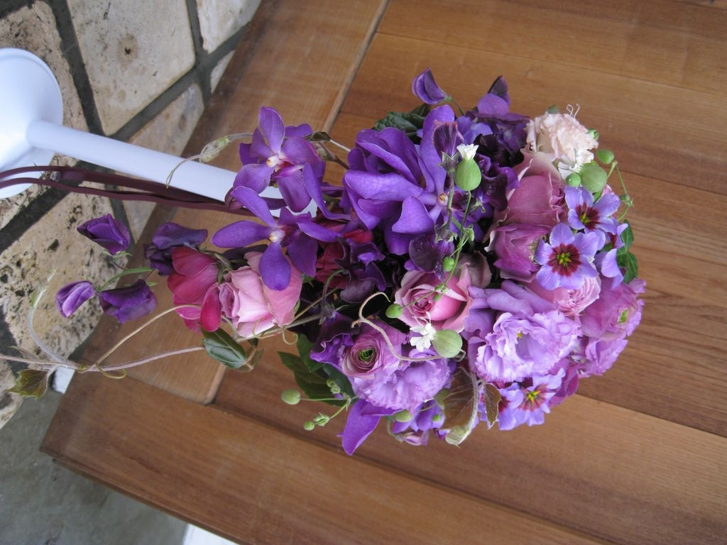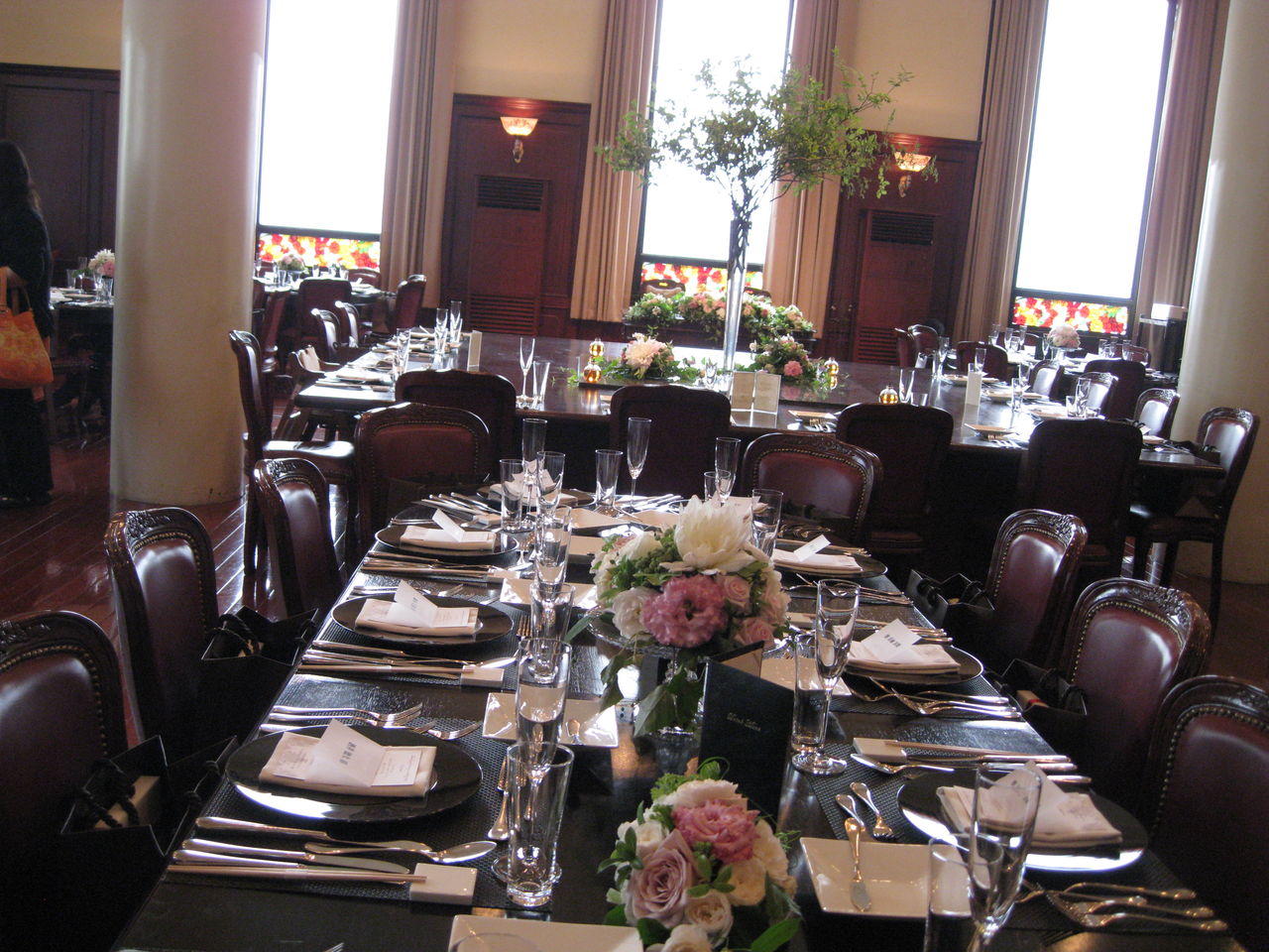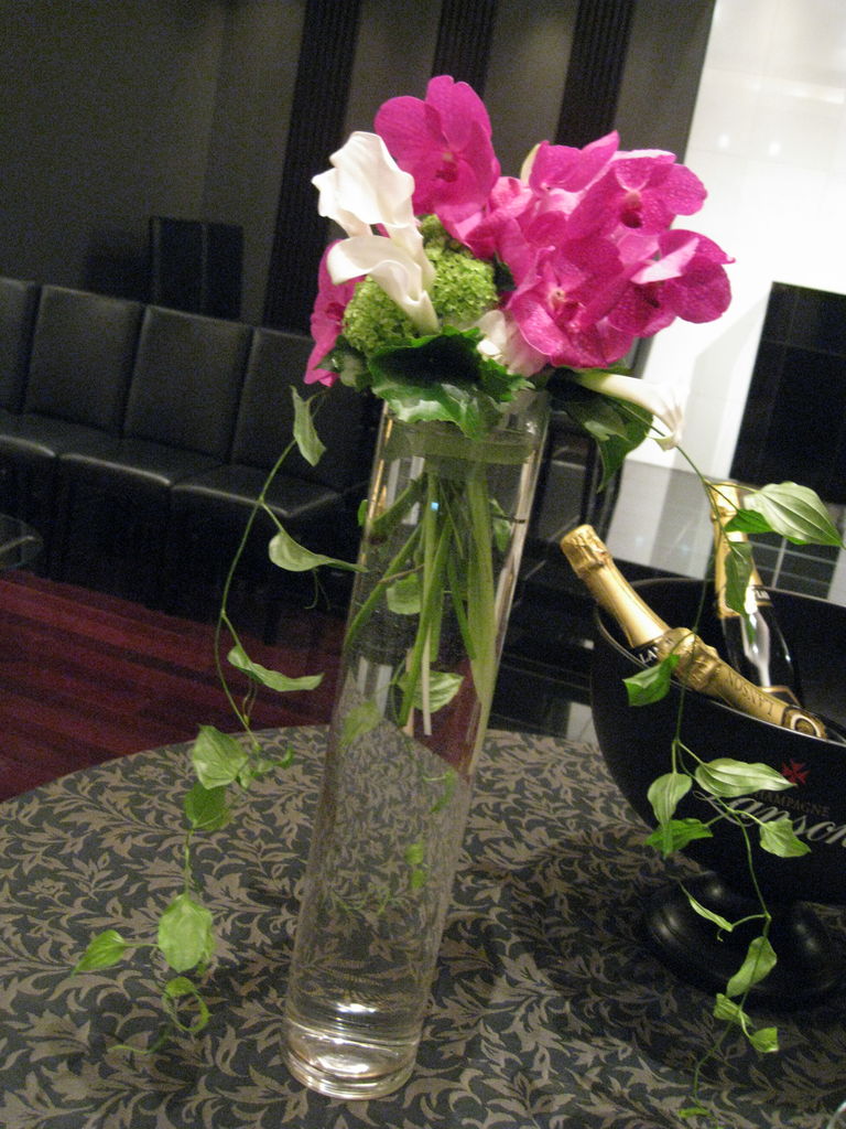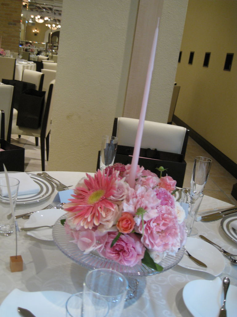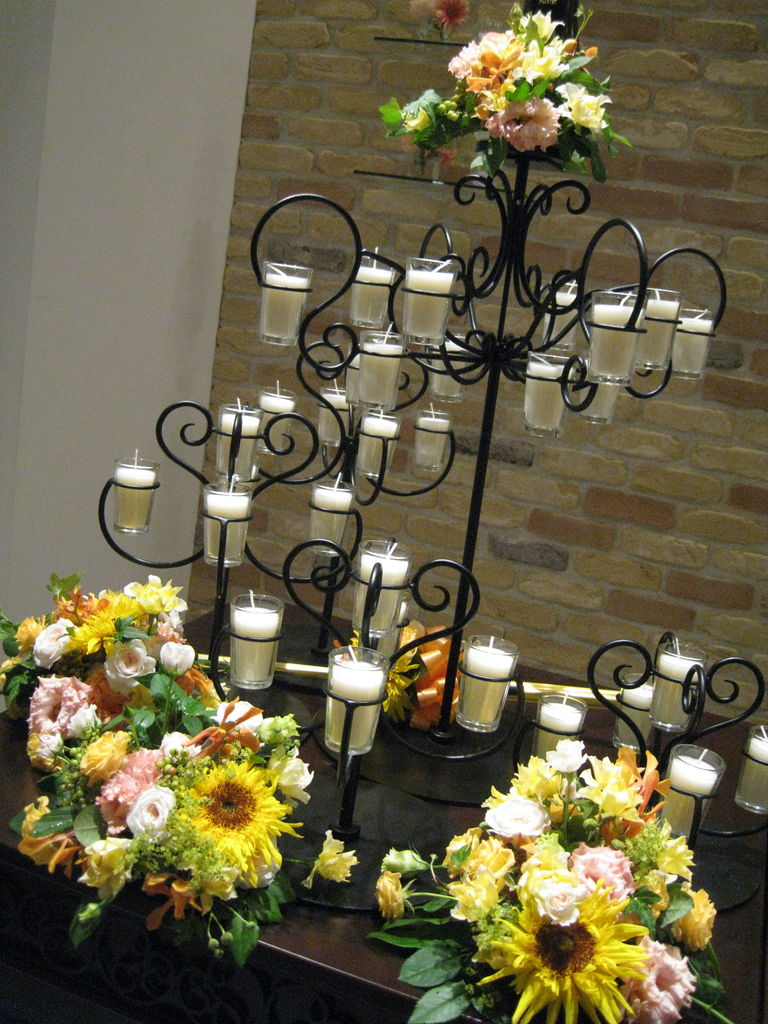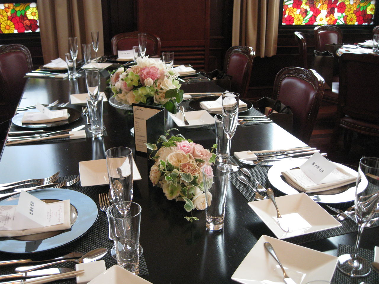 今年初めてのブライダルです。階段に下げたイニシャルは、手づくりで土台を作り、それにコケをワイヤーで、止めたものです。