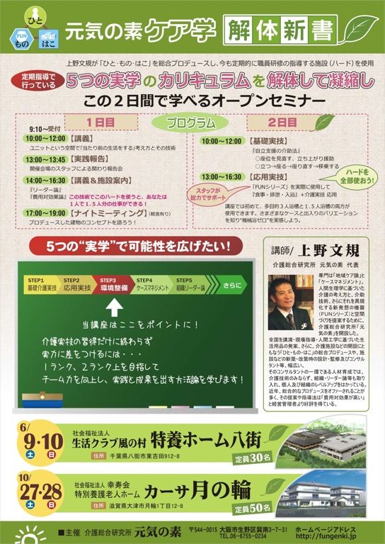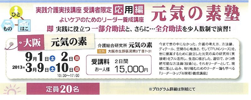 問合せ:介護総合研究所 元気の素(大阪市生野区巽南3-7-31)
