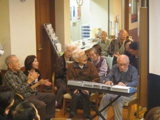 ここには老人保健施設、生活支援ハウス、ケアハウス、グループホームの4施設が隣接して建ち、(今会場)『ぺあれんと』は、これら複合施設の中心を担っている。