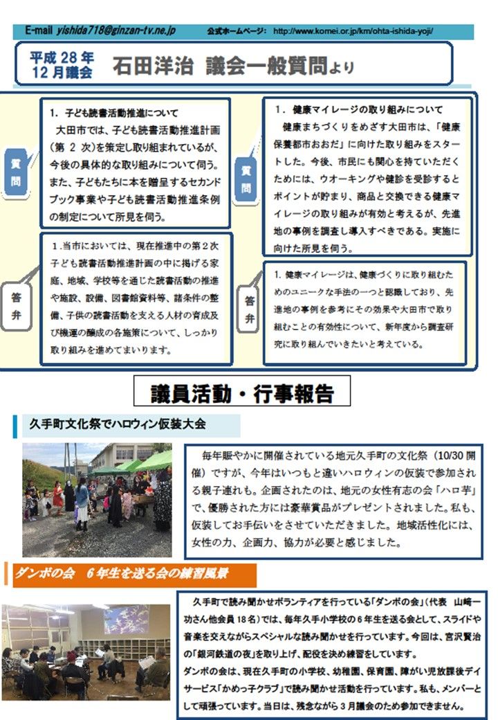 石田ようじ議会レポート・・・レボリューションNO,42完成!