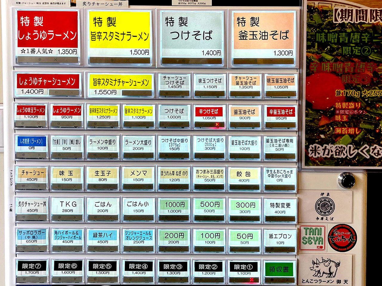 という訳で終了後。自転車で近場。西武新宿線下井草…『Menpeki Ginger Noodles』。店内券売機。先日までの秋刀魚昆布水つけ麺に変わって提供されているつけそば(¥1000)のボタンをポチッとね。セルフのお冷やを用意しカウンター席に。男女店員さんの2人体制。丁寧接客。先客1人、後客続々。気がつけば店内満卓状態。