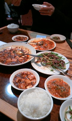 今日はママさんとランチの 約束。急遽まくさんの会社社長リコメンドの中華街のお店に食べに行くことに。名前があやふやで電話番号を頼りに探しあてたのが「景徳鎮」という四川料理の店。お店の外見によらずとても美味しかったです。四川料理は噂の通りやはり辛めなんですね。麻婆豆腐を頼んだら普通のでもかなり辛かったので、四川風味にしてたらきっと食べられなかったんじゃあないかと思いました。