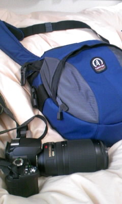 こないだNikon D60を買いましたが、まくさんが旅行前どーしても欲しいとダダをこねてうるさいので望遠レンズを買いに行きました。Nikkor Lensの70-300mmです。私は広角か魚眼レンズが欲しかったですが、それは次回に。