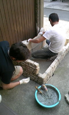 先週末、母親へのプレゼントとして取り掛かった花壇作りプロジェクト。思ったより大変で今日も引き続き作業しています。セメント塗ったりとかなり本格的にやってます。