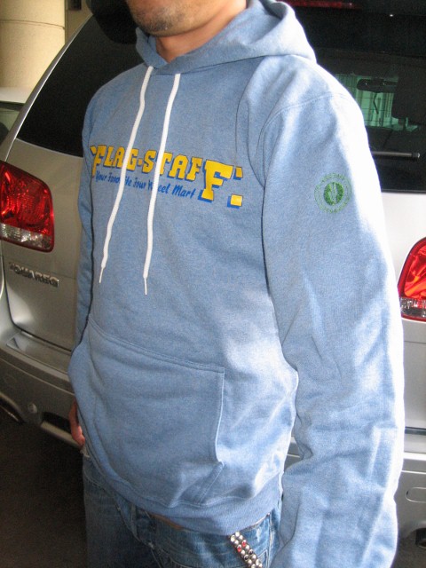 "FLAG-STAFF" NEW ITEM の紹介です United Sports パーカーです "FLAG-STAFF"ロゴ&袖ECO&SMOG刺繍 "MADE IN USA" サイズ S. L. カラ―:CH シャンブレー(ブルー系)