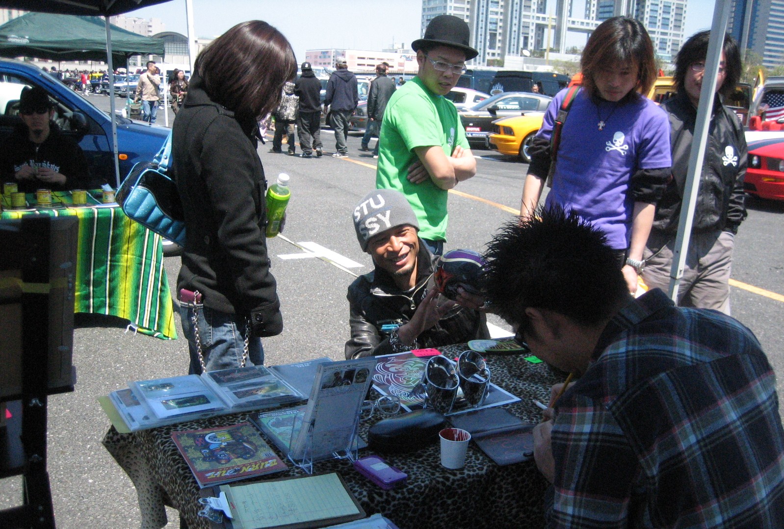 24th MOONEYES STREET CAR NATIONALS に参加しましたし 写真中 右3人が助っ人で来てくれました 右から少し怖そうな、イチロー、歯を食いしばっておっさんぽい、イジリ―モリ、ポーズが江頭の、ドジ小酒井君のイベント好きの三人です あと影の助っ人 急きょドジ小酒井のカマロを積載車で運んでくれた、下沢自動車、目黒から自転車で来た、カメラマン岸君、寝ずに参加した、ゴースト、お疲れさまでした お酒では無く日焼けして赤くなってるタコボーズが私&となり息子です 楽しい一日でした!一日会場にいた?