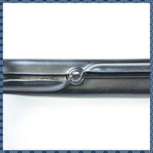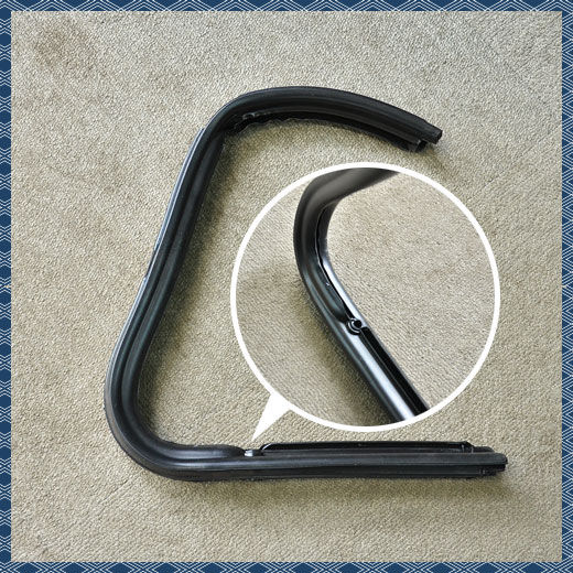 FLAT4 VWクイズNo.056のクイズの正解は、「ベントウィングシール レフト TYPE-1 '52-'64(BD-370)」でした!出題写真にありました穴は、ベントウィング(三角窓)を支えるステー軸が通る穴でした。