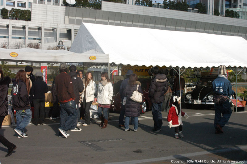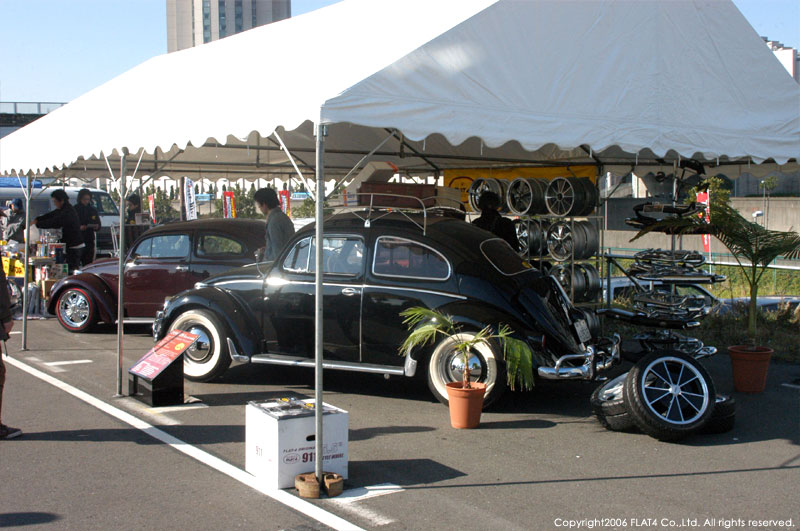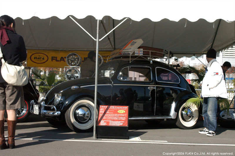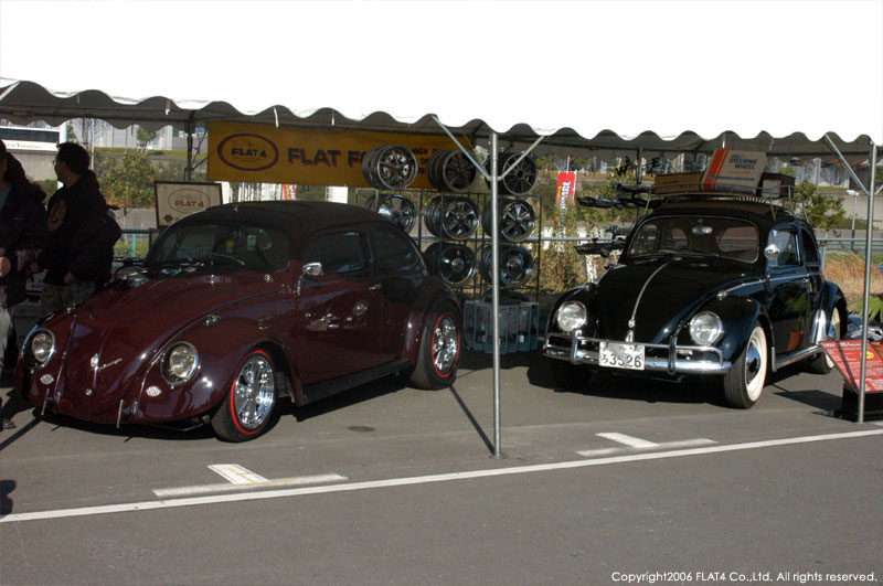 そんな中、今回FLAT4では、STREET VWs初のイベントという事で、盛り上げる為にも通常の倍以上の広さのブースを使用し、スワップミートコーナーだけでなく、'52 TYPE-1 CHOP TOP & '59 TYPE-1のショーカー2台とFLAT4オリジナルプロダクツをディスプレイしました。