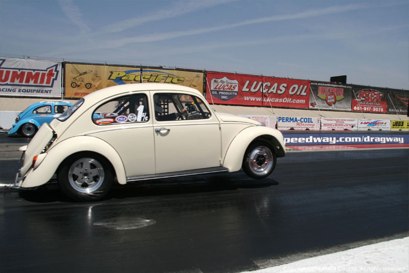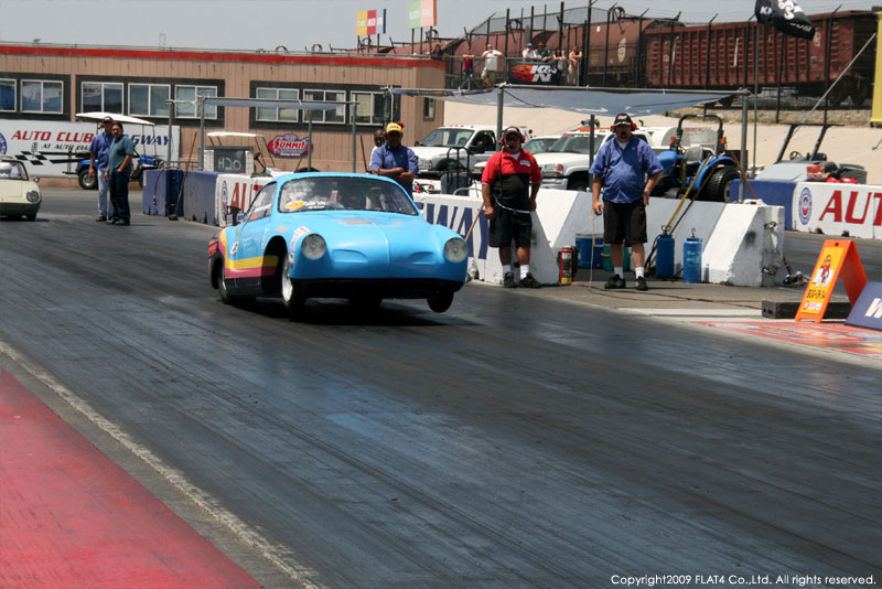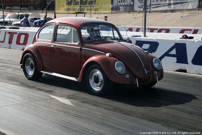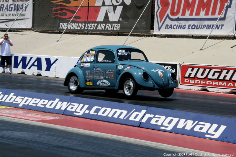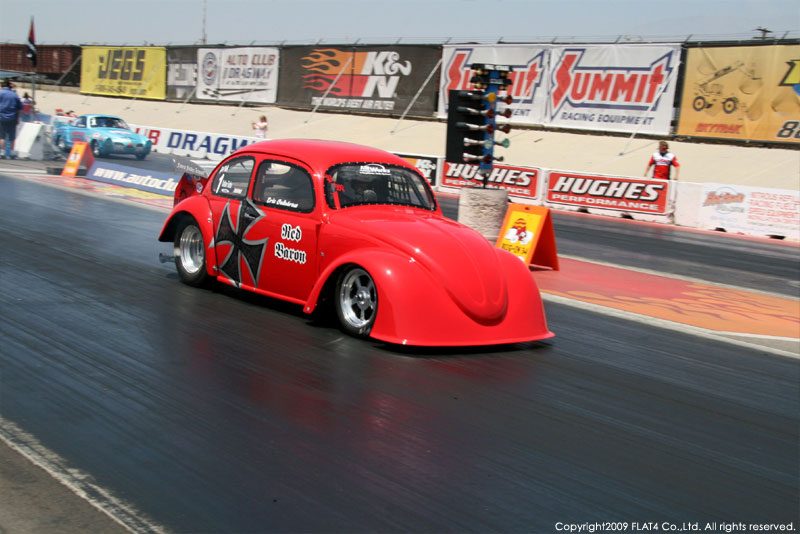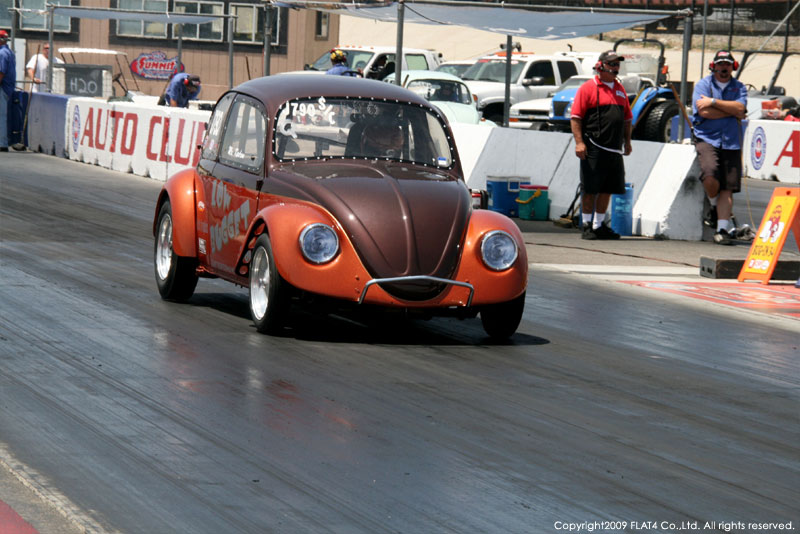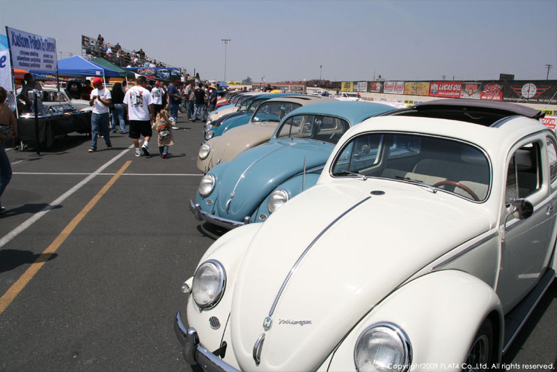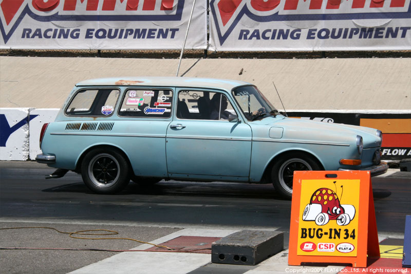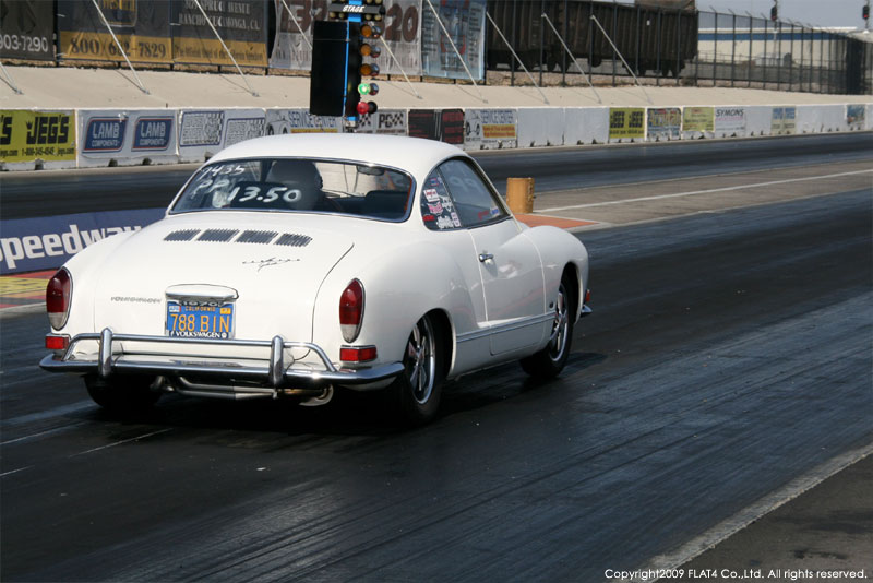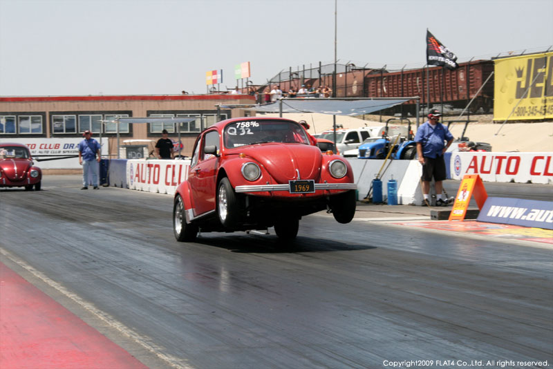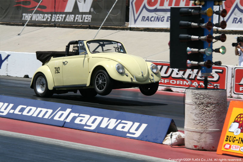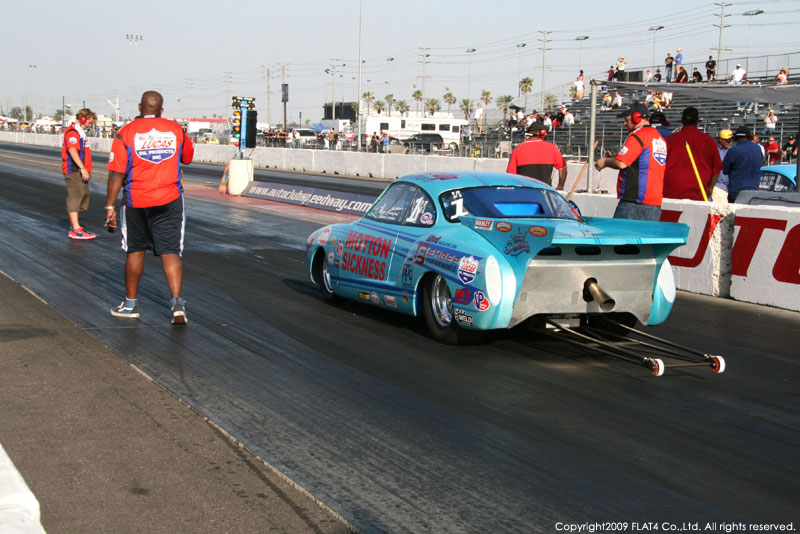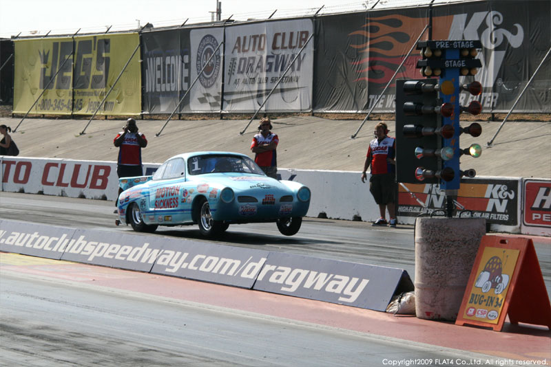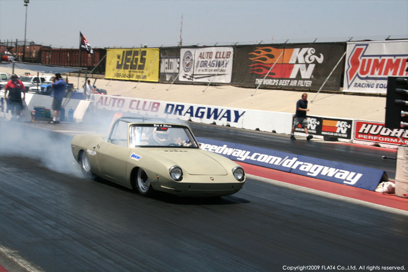 オレンジカウンティから約1時間ほどにあるフォンタナの会場「AUTO CLUB DRAGWAY」では、朝からDyno Donのボイスが響き渡ります。やはりDynoのボイスはカリフォルニアのイベントには必要不可欠!!一気にテンションが上がります!スポンサーブースを用意されたFLAT4ではリニューアルしたBRMをプロモーションです。オリジナルBRMを履くVWとして恐らく世界で一番知られるBill Schwimmerに協力してもらい、彼にFLAT4 BRMを履いてもらいました!彼もFLAT4 BRMのディテールには大満足!!