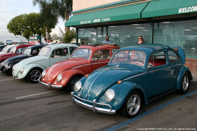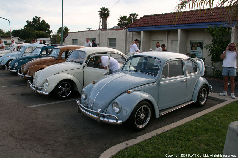 当日はDKPのニューメンバーに成れるか成れないかの投票日という事で“お前も来たんだから参加しろ”となり、対象の車を見てオーナーとも話をしてと。。。その対象になったのがStreet VWでも紹介されたシーブルーの'64 T-1のTimとHot VWsにフィーチャ−されたRickのイエローの'67 T-1でした。クルーズナイト中にDKPメンバーが場所を代えて協議。そして投票結果は2人ともOK!!