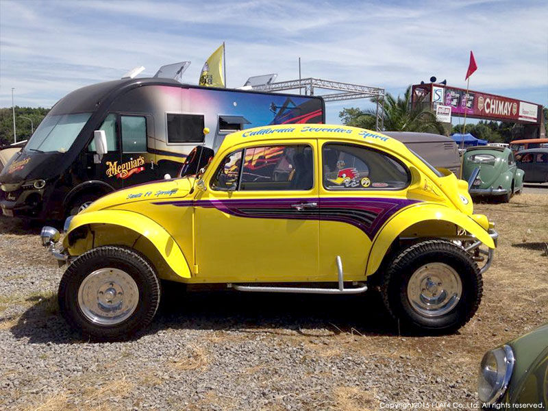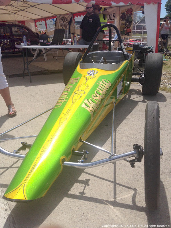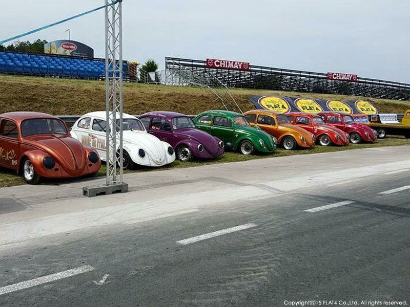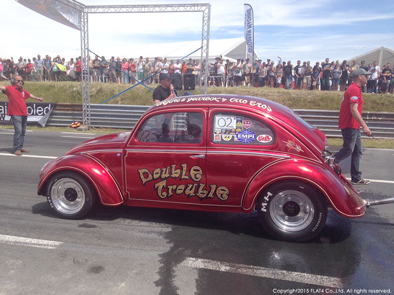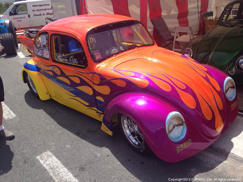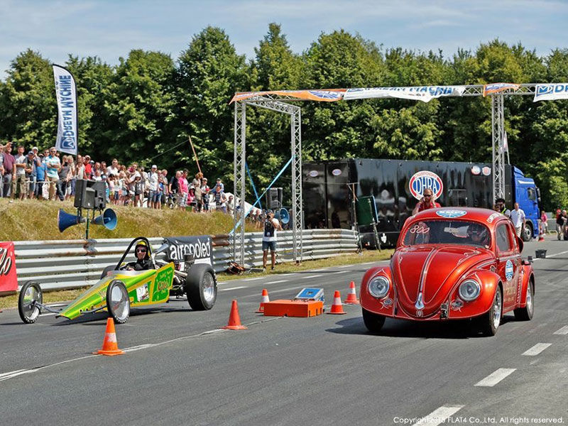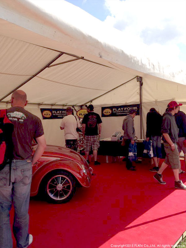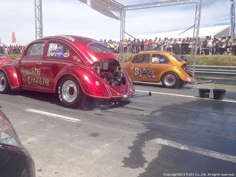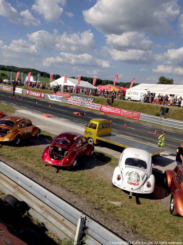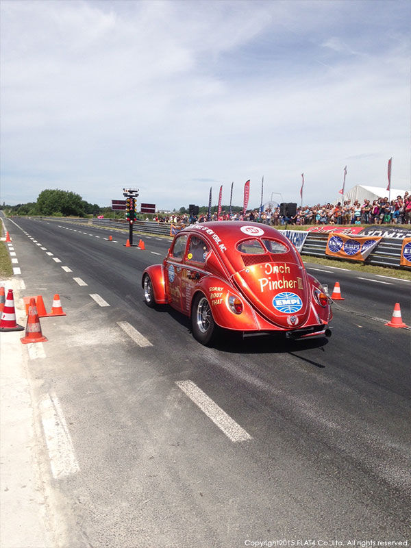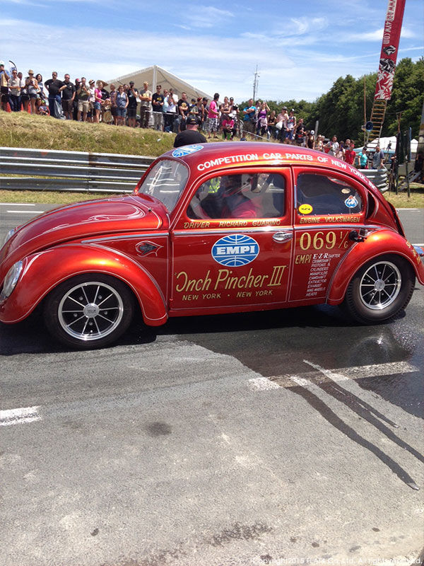 そして、このイベントに併せ送り込んだFLAT4コレクションカーのオリジナルEMPI Inch Pincher IIIは、今回のイベントポスターやプログラムの表紙を飾った事もあり、ブース展示中から本当に多くの方が記念撮影をしていました。そしてイベント最終日にはドラッグレースのデモランも行い、多くの方々から声援を受けました。