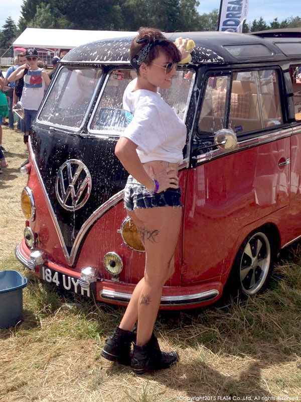 広大な芝生スペースに並んだカーショーエリアは、アメリカのトレンドを意識した様なハイスペック+ディテーリングに拘ったキャルルックは勿論、スラムドスタイル、オリジナルスタイルと色々なスタイルのVWが勢揃い!!