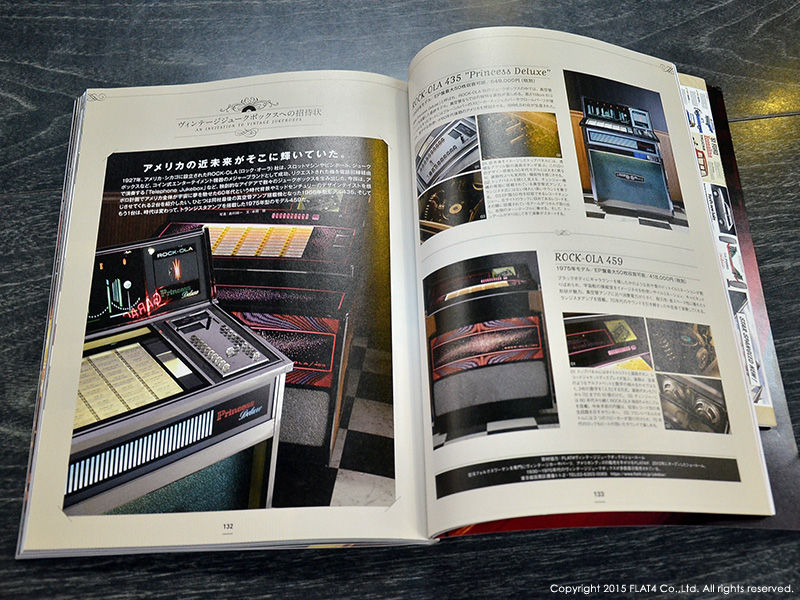 もう一方の好評連載、「ヴィンテージジュークボックスへの招待状」は第3回目となります。今回取り上げられているのは、ROCK-OLAの人気モデル 1966年 435 "Princess Deluxe"(JB-113)と1975年 459(JB-051)の2台。真空管アンプからトランジスタアンプへと移り変わる、ヴィンテージジュークボックスにおける大きな転換期に作られたモデルです。デザインにおいても'60年代初め迄とは異なり、スクウェアでエッジが強調されたフォルムは当時の人々にとって近未来を感じさせる斬新なスタイルであった様です。ディテールや詳しい解説は誌面をご参照下さい。