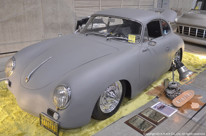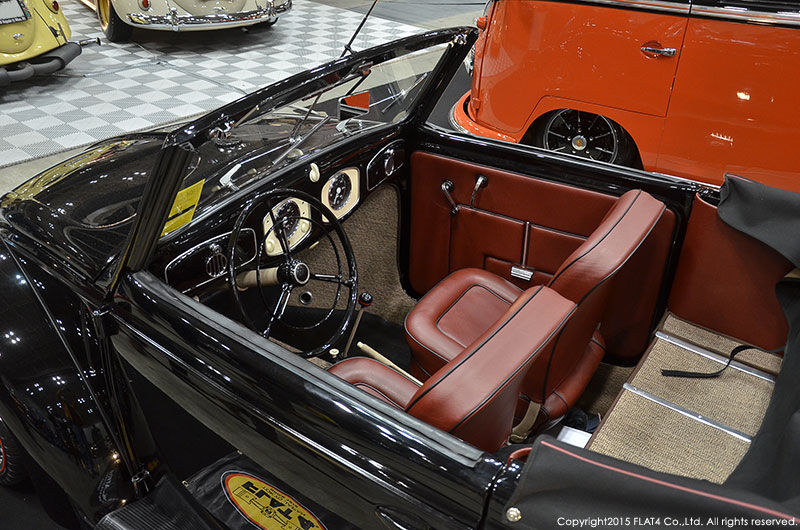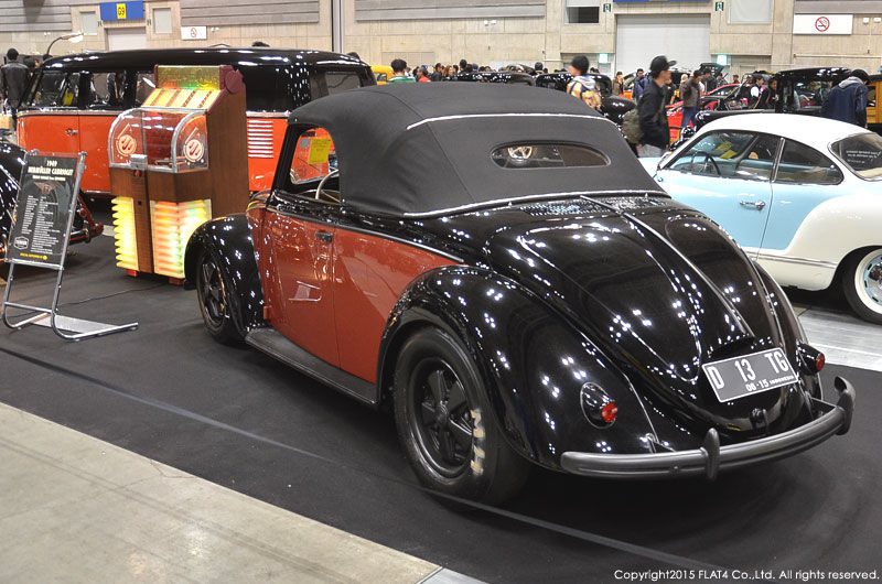PORSCHE 356Aのブレーキ廻りやVWエンジンベースの幻のVINTAGEパフォーマンスエンジン"DENZEL"1500Sを搭載し、究極の"Klassisches Performance"を実現した当社コレクションカー『1949 TYPE-14 Hebmuller Cabriolet』を、当イベントのために、贅沢にもクロームパーツを全てブラックアウトし、アクセントにレッドパイピングを施し、更にナロード&ロワードされた足元には、17インチの大径BRMスタイルホイールを装着させ、究極の"Heb ROD"スタイルへと仕上げました!