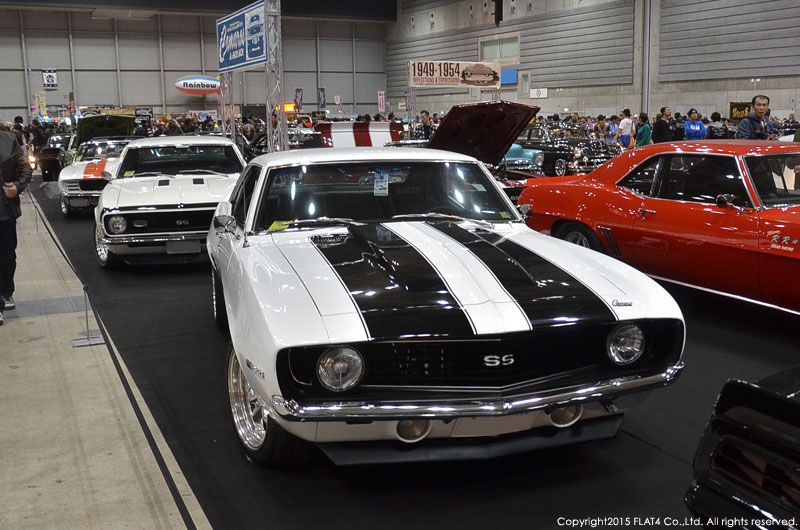 1967年から1969年までのChevy Camaroが並んだSPOTLIGHT「Camaros A GO GO!」エリアや、スーパーチャージャーを搭載したまさにチューニングカー全盛期の'70s年代を象徴するマッスルカーも多数展示されていました。