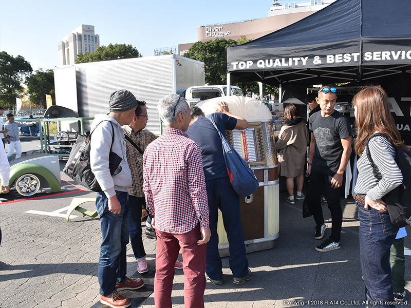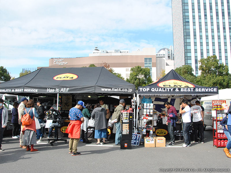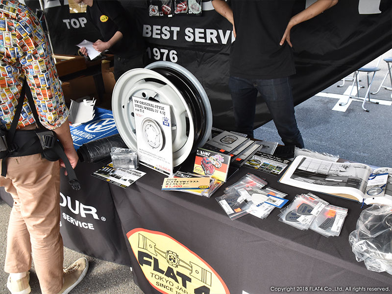 話題のNEW ITEMや定番のFLAT4オリジナルプロダクツ、HARD TO FINDなVW純正N.O.S.パーツ、ハイパフォーマンスITEM、VWオフィシャルグッズ、国内外のVW雑誌等に加え、36HPフルコンプリートエンジン等未公開のスペシャルな商品もご用意。ジュークボックスも展示し実際に音楽を流し、沢山の方に興味を持って頂きました。FLAT4ブースに足をお運び頂いた方々には改めて御礼申し上げます。ありがとうございました!