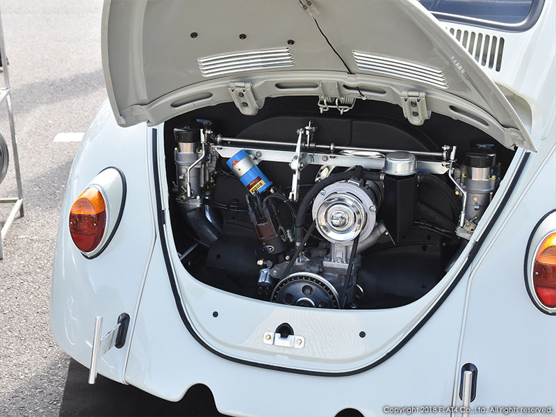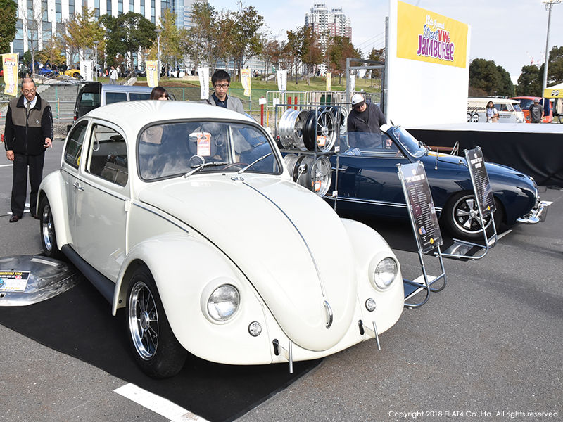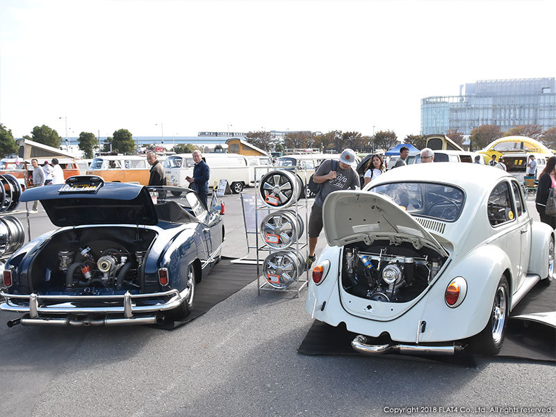 そして今回、FLAT4のブースではこのイベントに合わせ制作した1967 TYPE-1 CALIFORNIA LOOKと1959 K.GHIA CONV.の2台をディスプレイ。