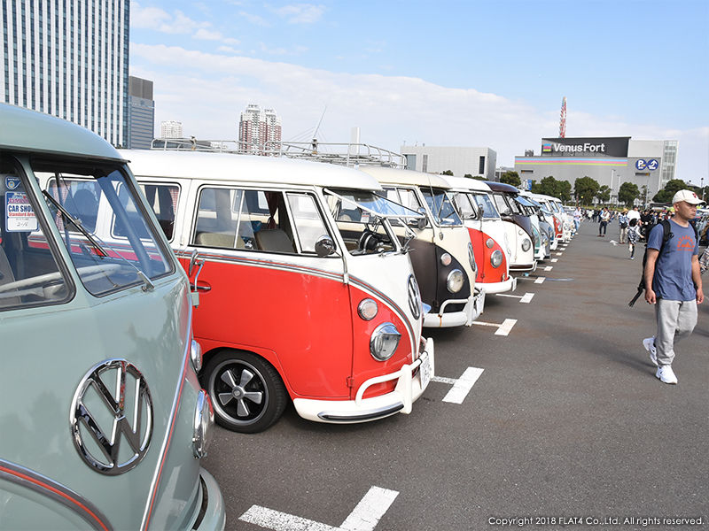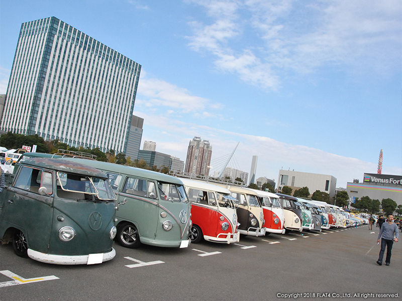 爽やかな秋晴れに恵まれ、おそらく今回が最後となるお台場でのジャンボリーに相応しい最高の気候となりました。会場となったお台場レインボータウンには全国各地からVWが集まり、その台数は400台以上! 他のVWイベントと比較してもジャンボリーの規模は段違いで、日本最大のVWイベントである事を改めて実感させられます!!