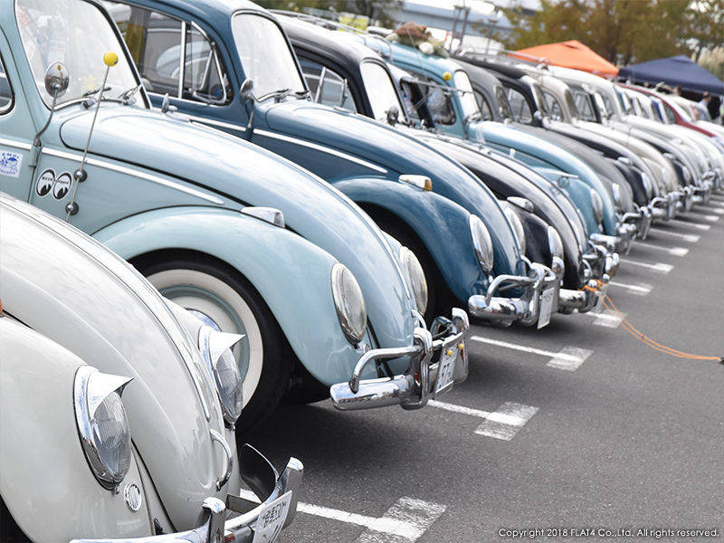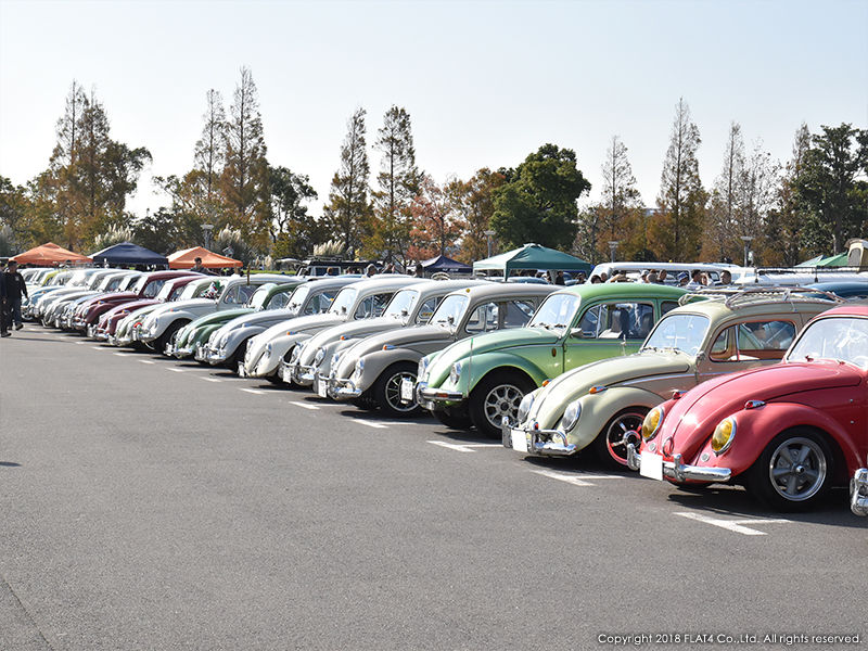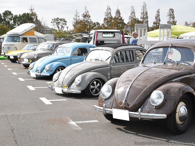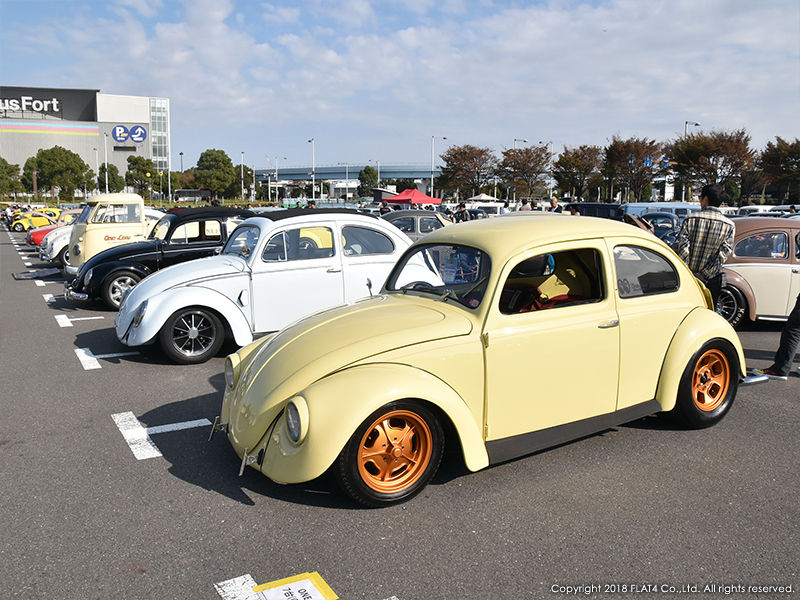 エントリーVWで最も多いのはやはりTYPE-1。カーショーエリアにはTYPE-1がずらりと並び、写真ではその列が入り切らないほど。各々がしっかりとクリーンされ整然と並べられた光景は圧巻でした。