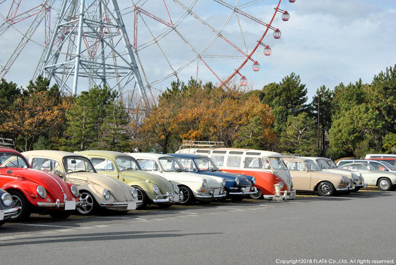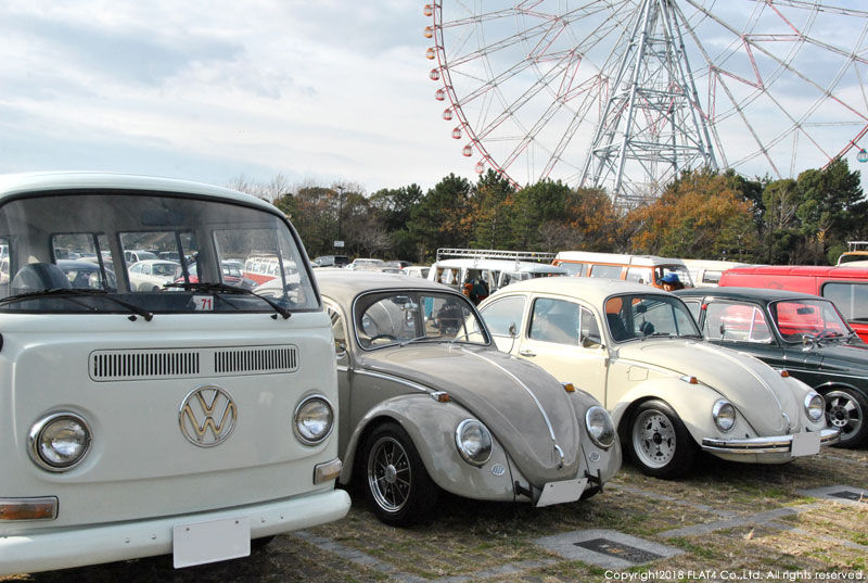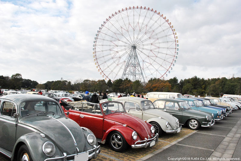 そして、会場に並んだ空冷VW達はどれも手入れの行き届いたクリーンな車両で、オーナー様の愛情が伝わってきます!会場では、オーナー同士、今年一年のご挨拶やVW談義などを談笑されたり、愛車との記念写真を撮影したり、中にはお子様を連れて大観覧車に乗りに行くオーナー様も居たりと、皆さん穏やかな日曜日の午前中を満喫されていました!