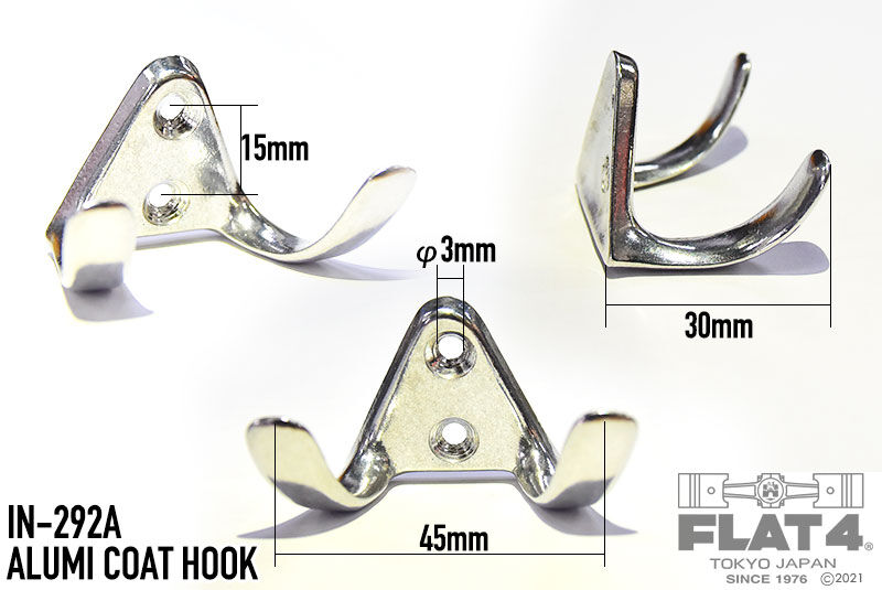 '68年モデル以降のTYPE-2 WESTFALIA CAMPERモデルのクローゼット周りに装着されていたデュアルフックタイプのコートフック(リプロダクション)です。元々キャンパーモデルの装備として、脱いだ洋服などを掛けたり、ランタンやバスケットなどを吊るして使用されていましたが、ビス2本で固定するだけなので、アイディア次第で他の車種に装着したり、ガレージやホームインテリアなどにも活用出来そうです。