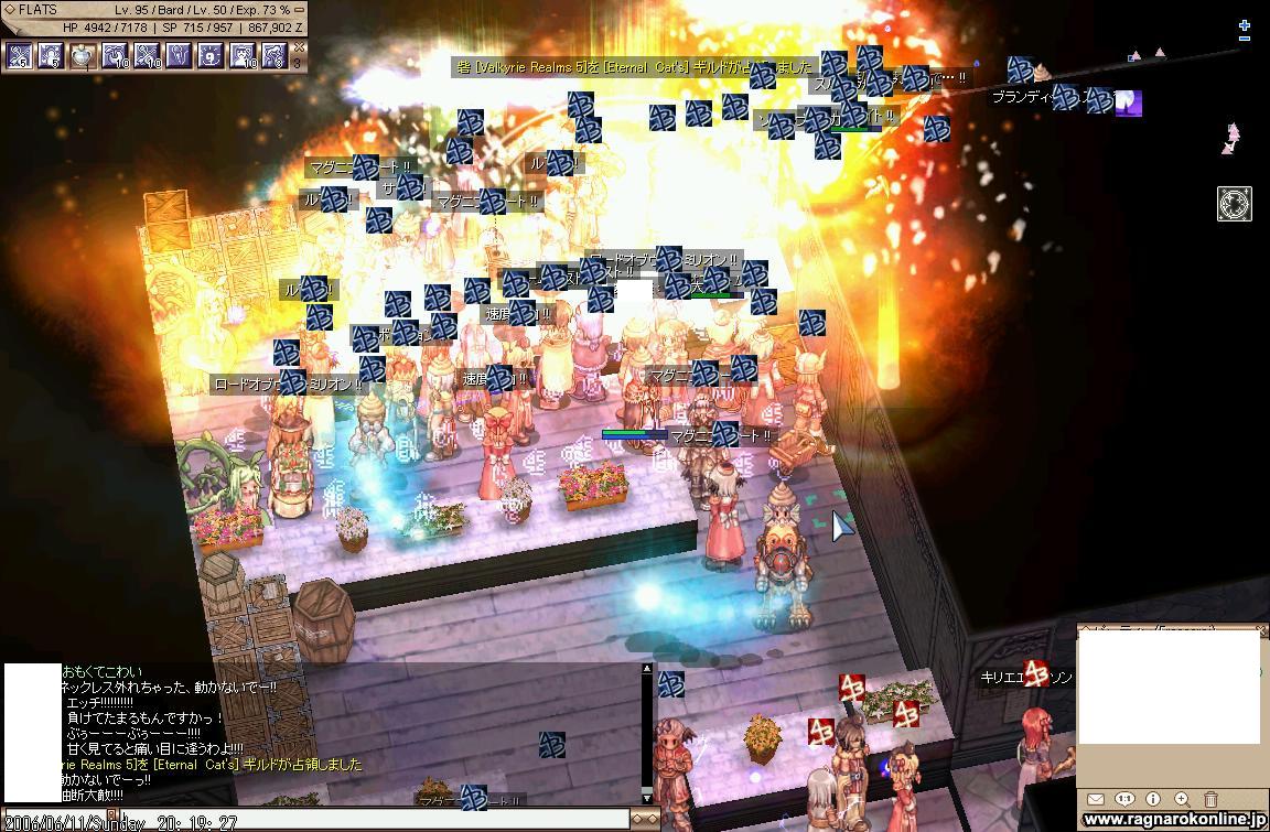 まあそんなこんなで後は暇防衛。数人L1に派兵して、トリスティアさんがソロ&一回攻撃しただけでL1落とせたとか。おそろしい幸運デスネ。