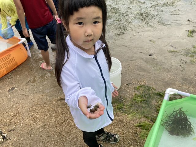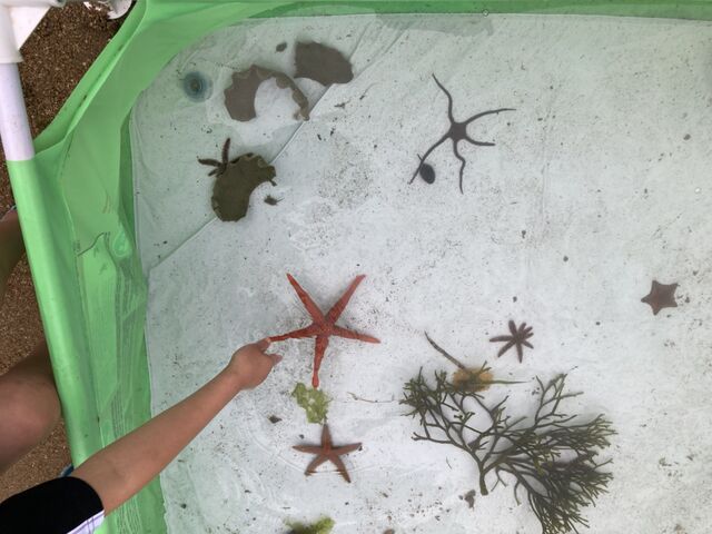 今年はプールを3箇所設置し、みんなで捕まえた海岸の生き物をプールに入れて観察しました。