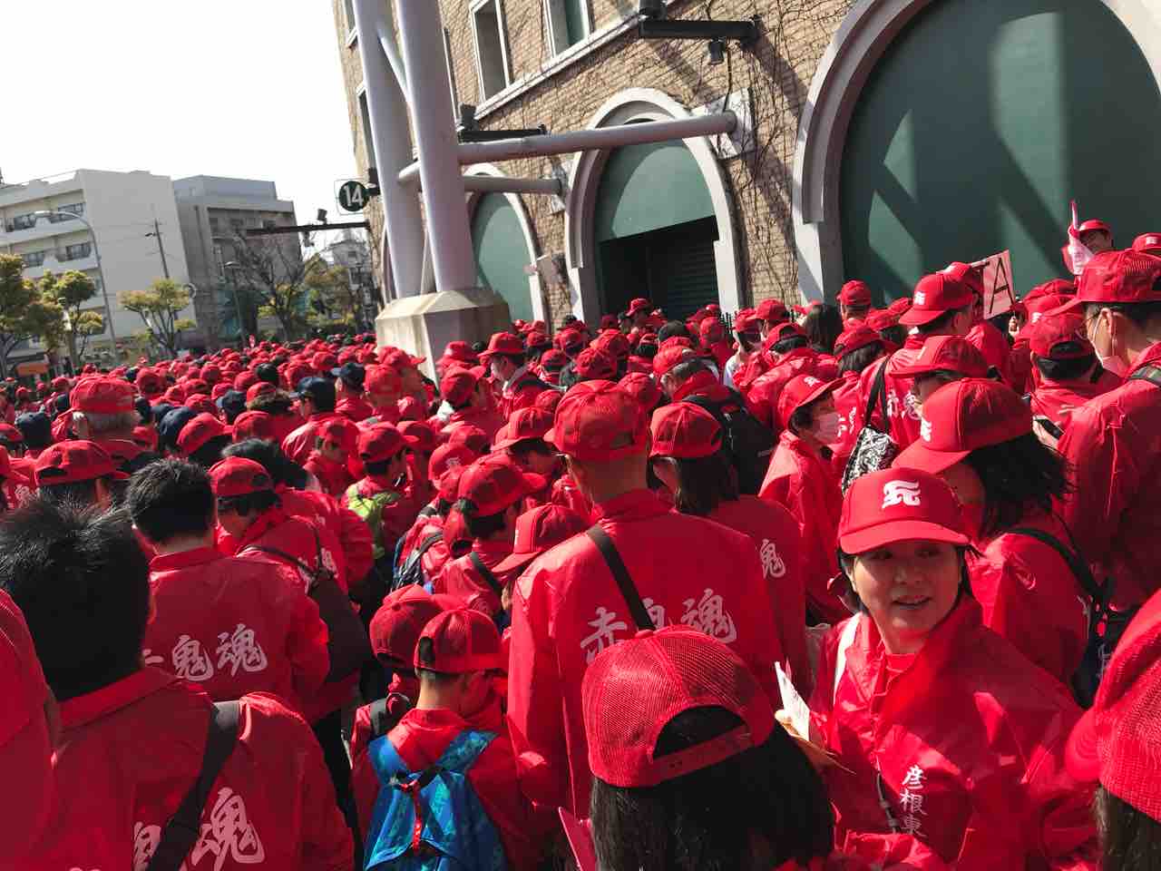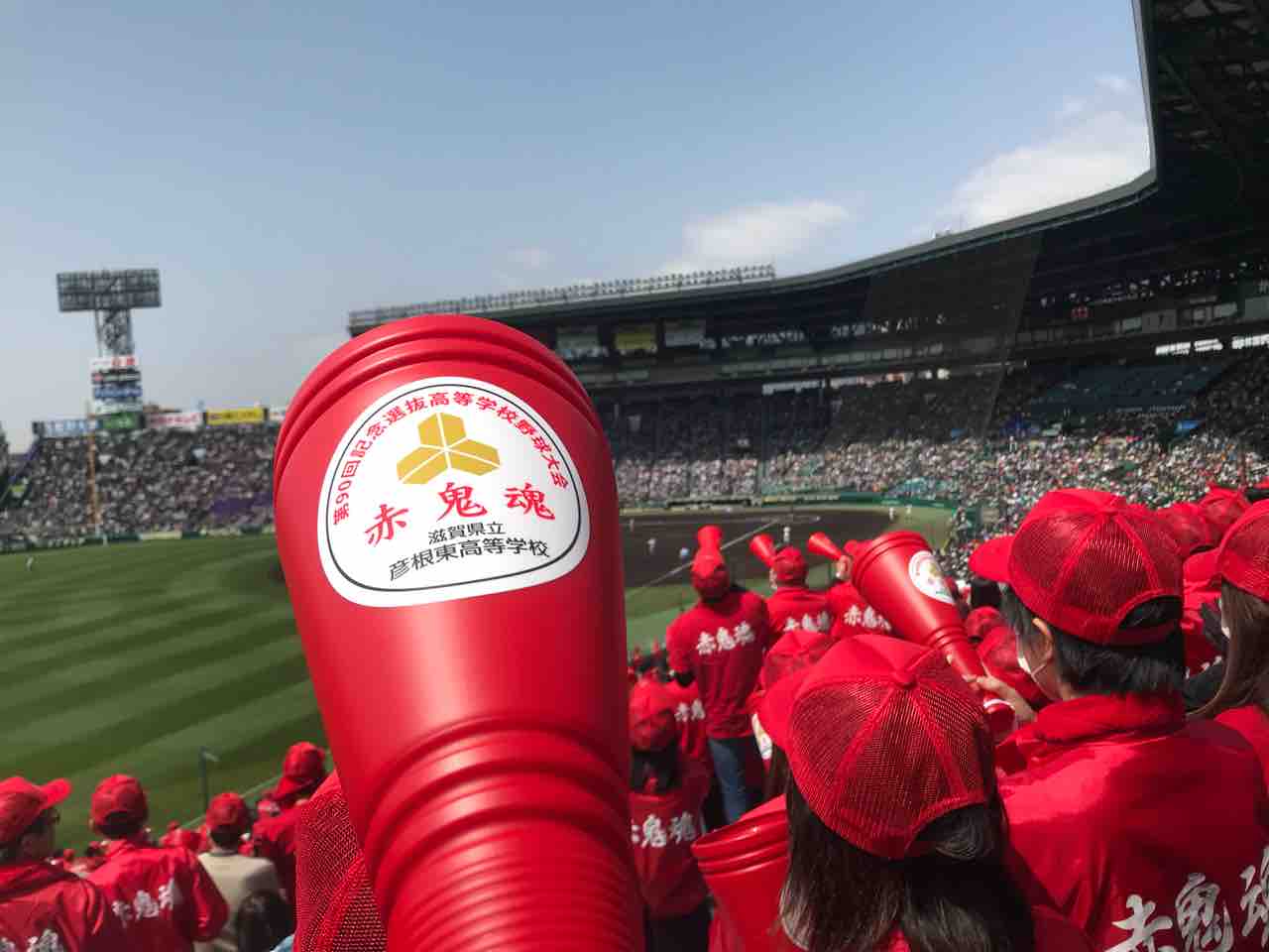 彦根東の伝統が白く染め抜かれた赤鬼魂
