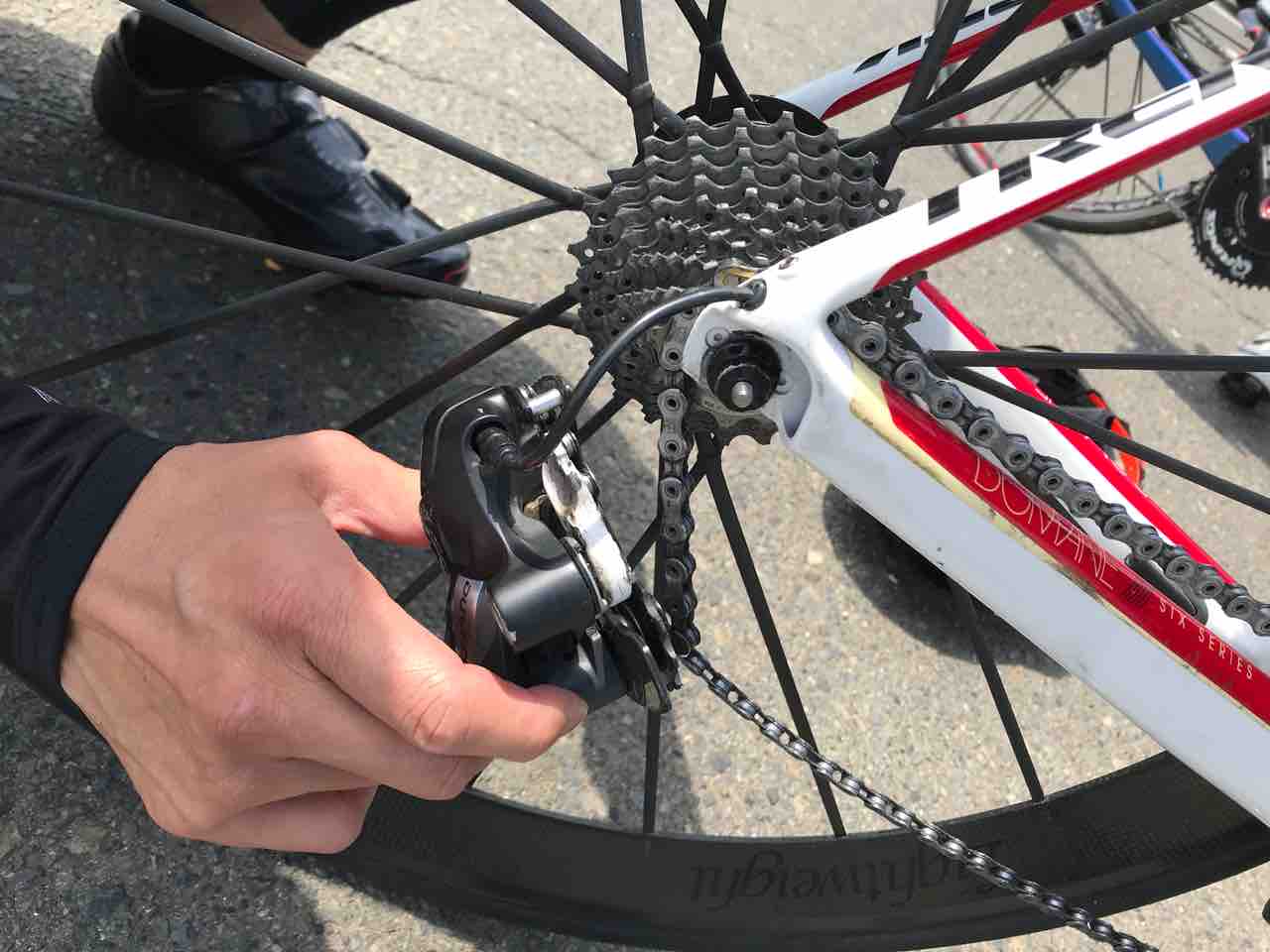 私、ディレイラーハンガーのスペア、いつも携帯してます。宮古島からバイクが戻ってきたときちょっと曲がってて、直してもらったけど、次なんかあったら多分折れると言われたので…